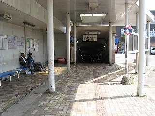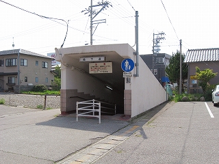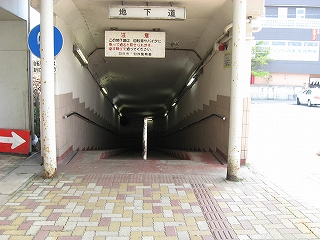 地下道入口前にて。