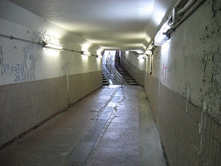 地下道内の様子。スロープでない方を二輪で走る人もいるかもしれない。