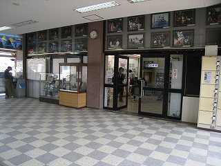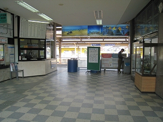 改札口の風景。内照式になっている観光写真は、やはり千里浜。こういう紹介板は私個人のつぼ。しかしこのコンコース、天井が変に一部低い。