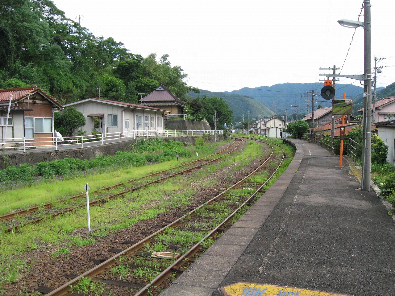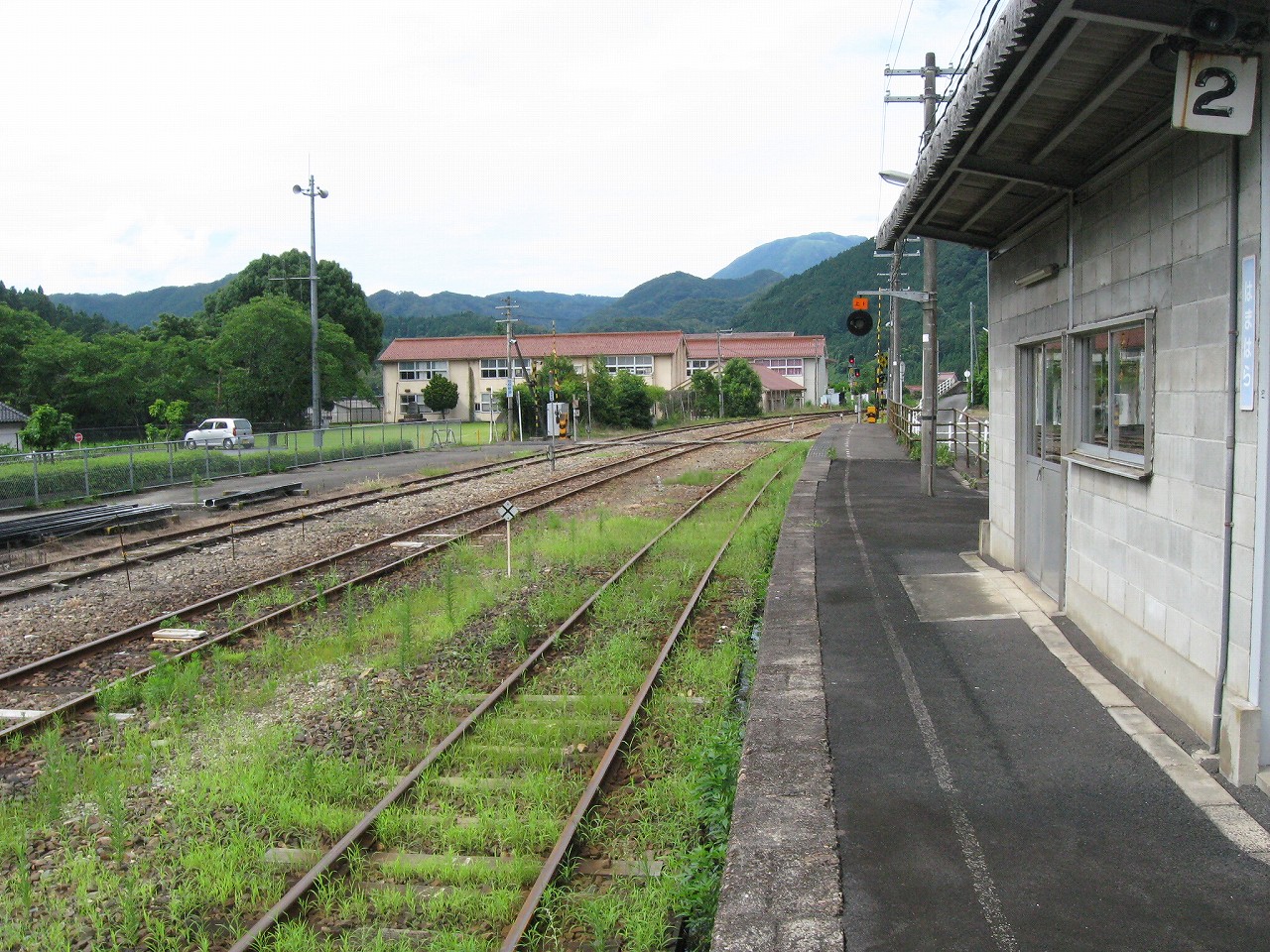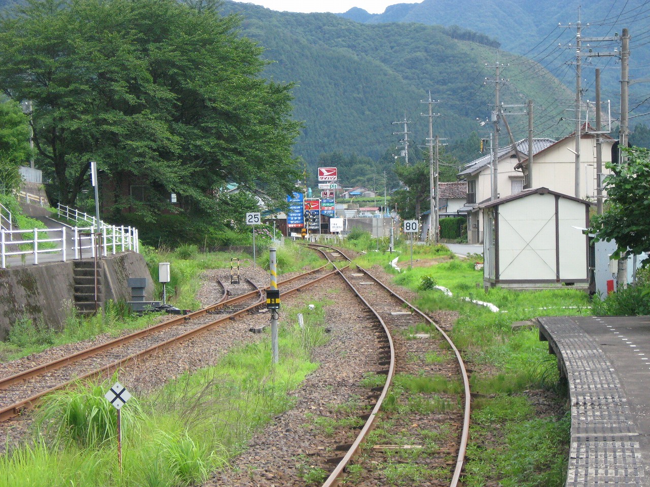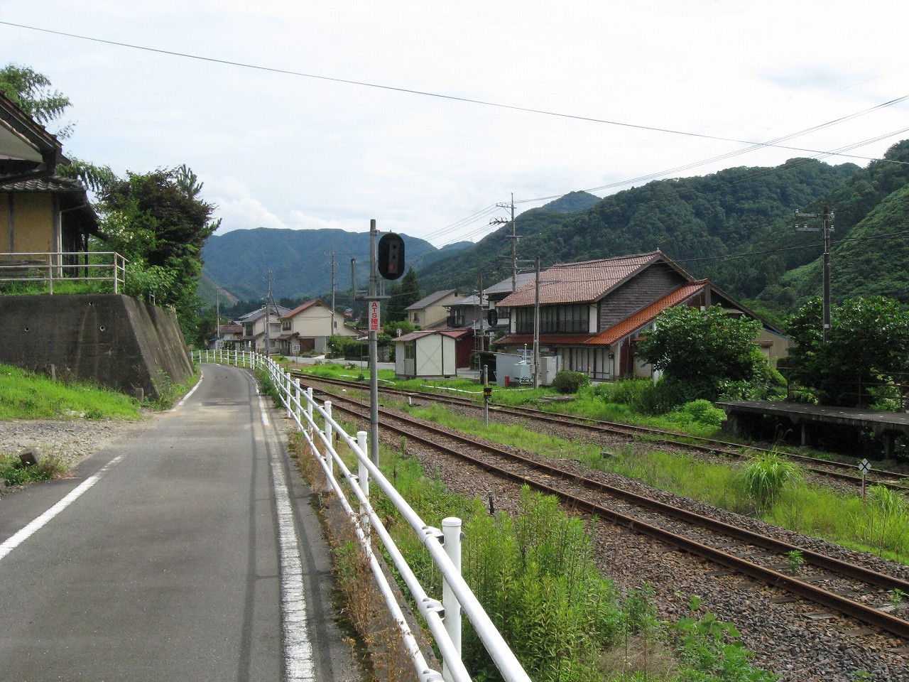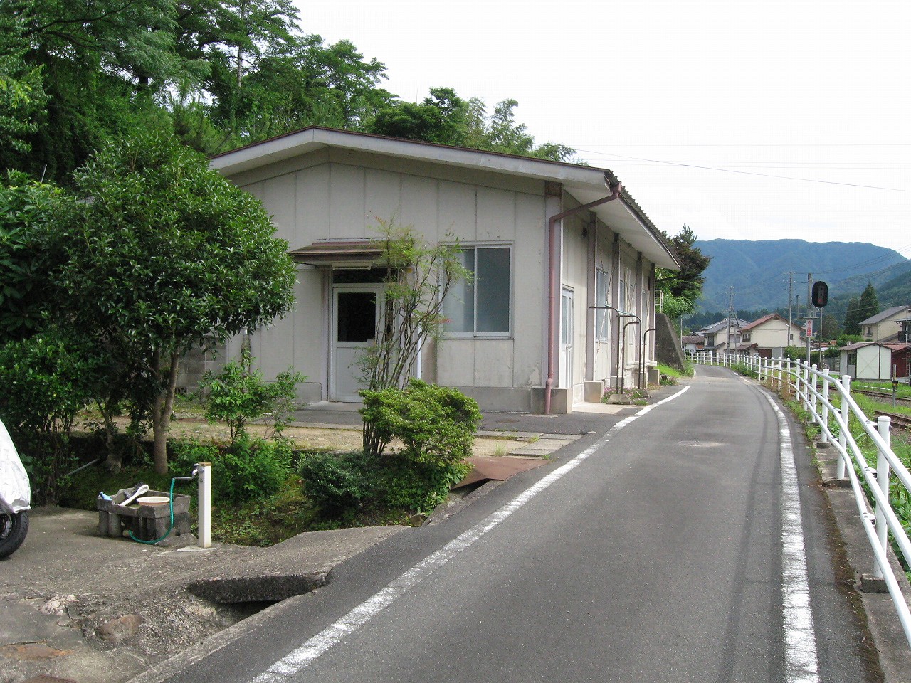 早く車内に入りたかった。ともかくもう暑くて…雲多めで日差しはないがそれでも室内は多少はマシだった。といっても開放型だから外とおんなじみたいなもんだけど… 据え付け長椅子もあり、新設トイレ、三江線には珍しく駅近に自販機があるので、やはりここは駅寝するにはよさそうだ。残念ながらここを起点に取ると最短で全駅来訪ができないのでその予定はないが…窓口は完全に壁と化していて、かつての駅舎内の面影はない。構内側の軒下からは転轍機操作室や電話番号表が見え、以前はここにも人が詰めていたのだなぁと思い耽る。夏は暑く、冬は積雪区間を管理、近くに店もない、メシはどうしていたのだろうと思うが、日の丸弁当ばかりだった中、なんとなし、たまたま料理好きな若手職員が入ってきて、駅務室の簡単な炊事場で親子丼などを作りはじめるや、好評となり定着となるも、しだいになんでおれがこんなことをと"シェフ"の不満が鬱積、ヴェテランが「いやぁ、なんだ、君にはちゃんと仕事も教えとる。しかし教えるたって、教えられりゃ誰でもできることさね、んなに気負うことはねぇ。けど、料理はそうとも限らん。最近は民営化の話もある、ここがダメになっても、お前はなんとかなるじゃねぇか」と諭して駄賃も出し、飯場担当を続ける、そんな物語が思い浮かんだ。