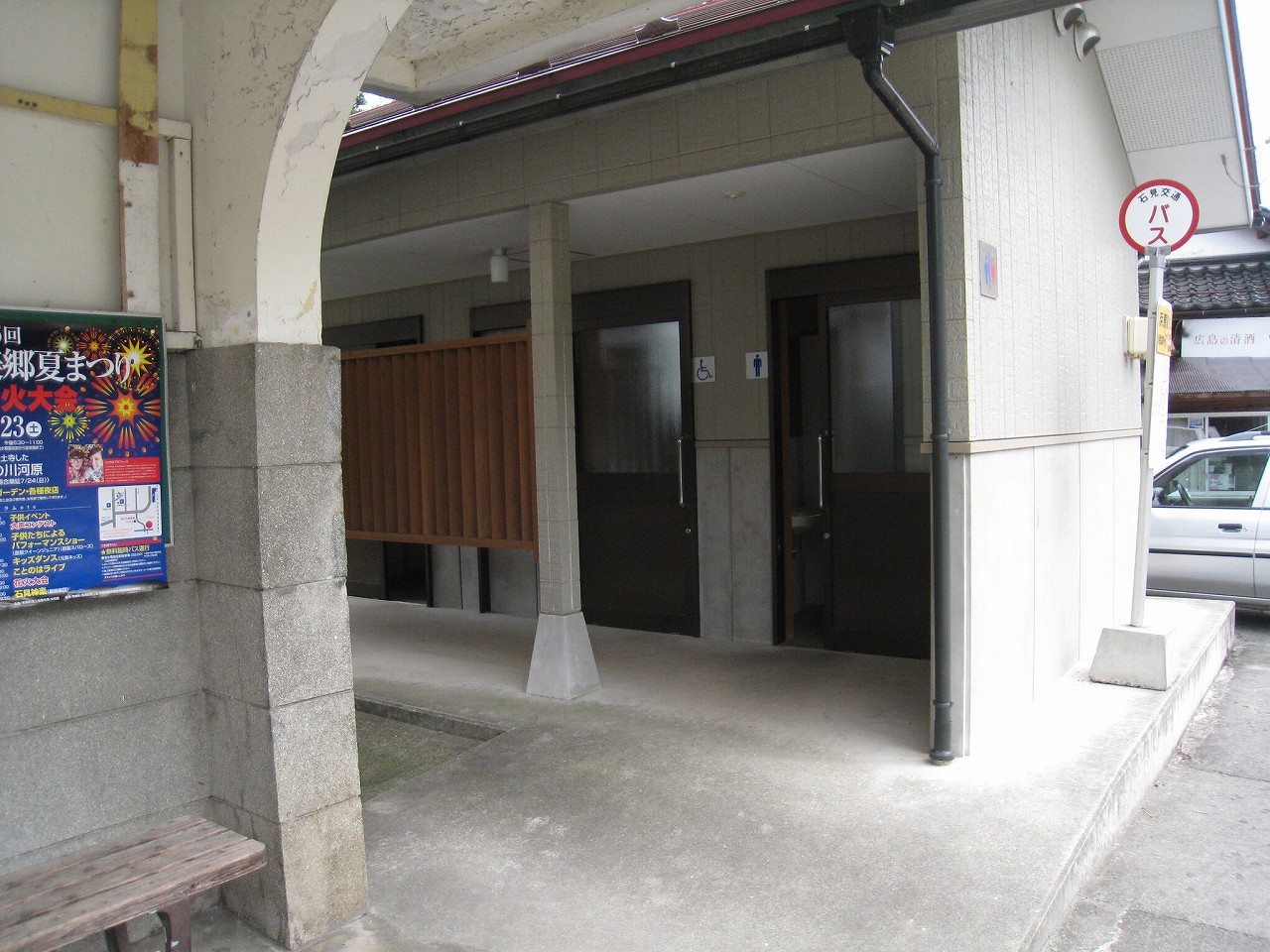 ただ、駅舎が石州瓦葺きではなくトタン葺きだっのたは気になった。予算が触ったのだろうか…たしかに駅前のコンクリ敷きは広いけど、もっとバスが転回するようなものを想像していただけに、なんかほんとに道路沿いである。そして相変わらず人影はなく…(車は軽トラや旧式カローラなどがたまに通る)