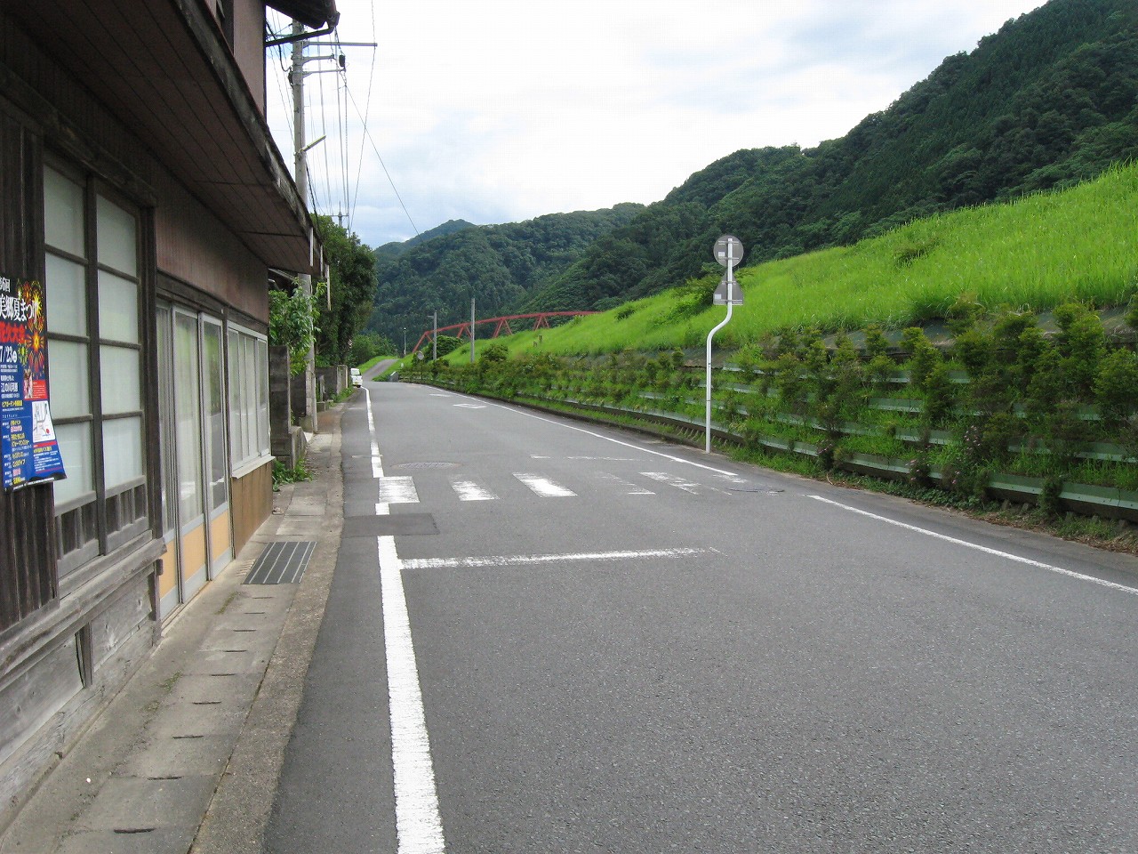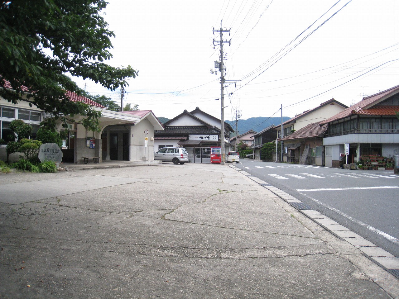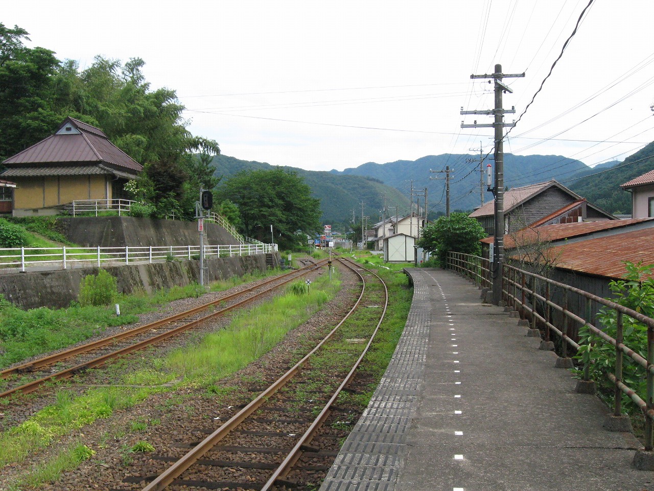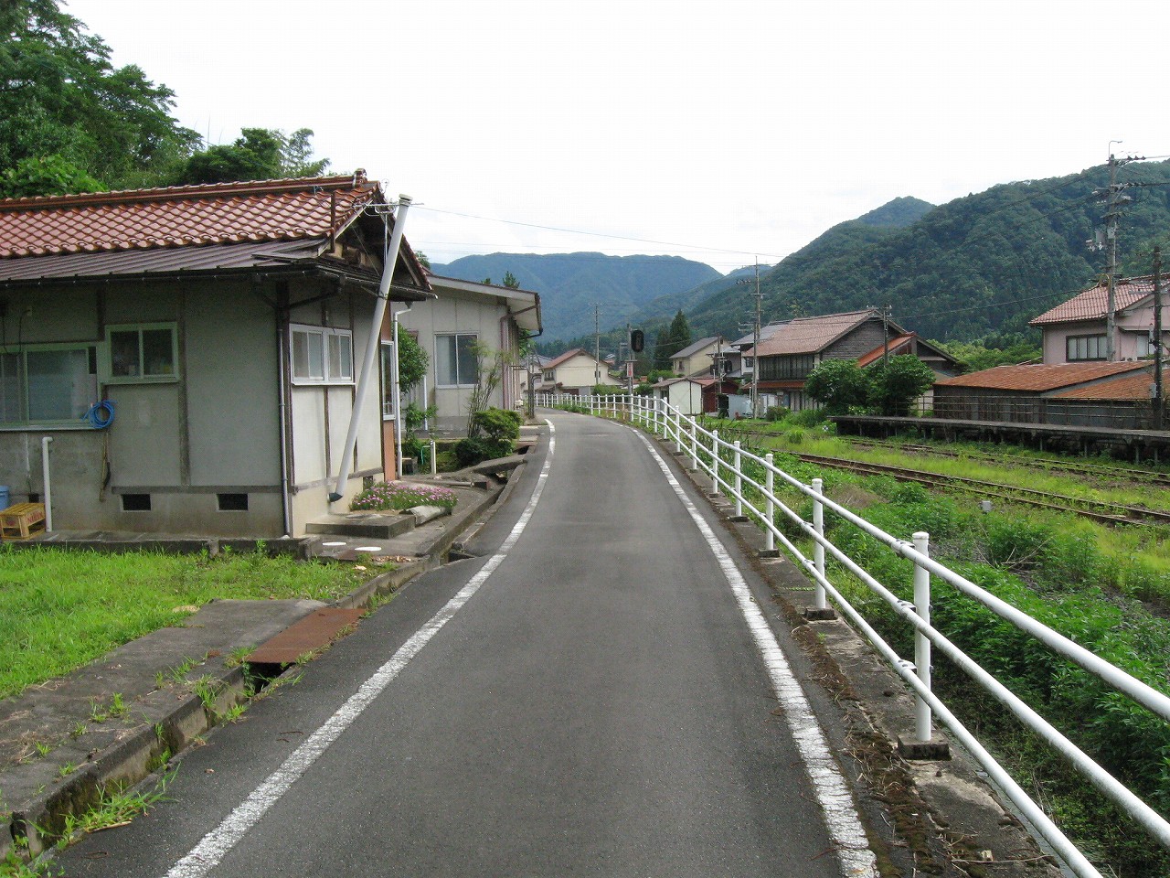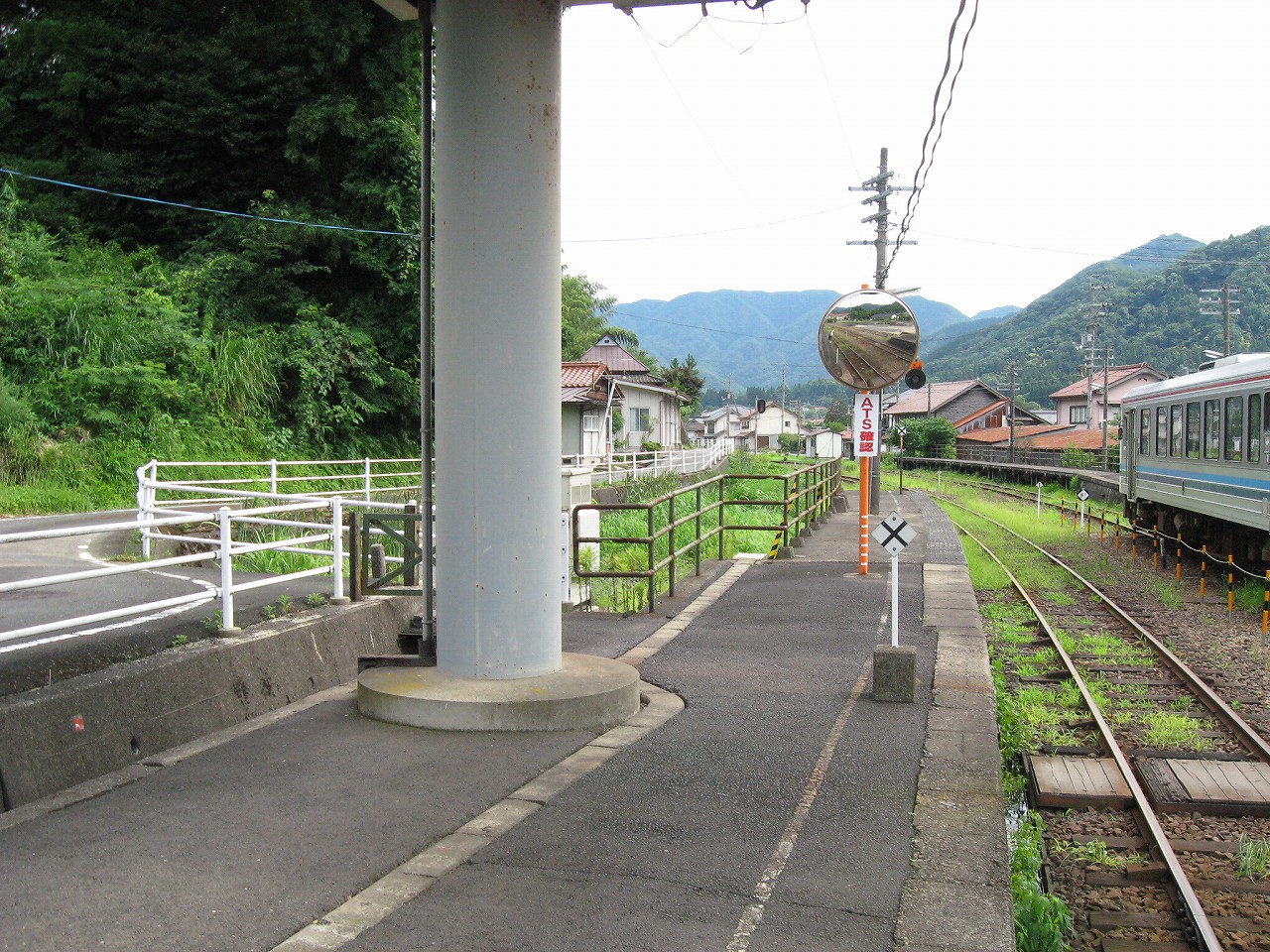 駅から出るとコンクリ敷きが迎えるが、すぐ民家と橋で、どうも本来的にはここはほかの無人駅とあんまり変わらない立地なのかもしれない。それでも浜原本町というように、旧い街道沿いの町もあるので、やはり格としては上がってくるのだろう。それが証拠にか、駅舎は立派なコンクリの庇の付いたもので、この水運のなせる山里の町に、近代化の威容と文化の侵入を感じさせるものだった。