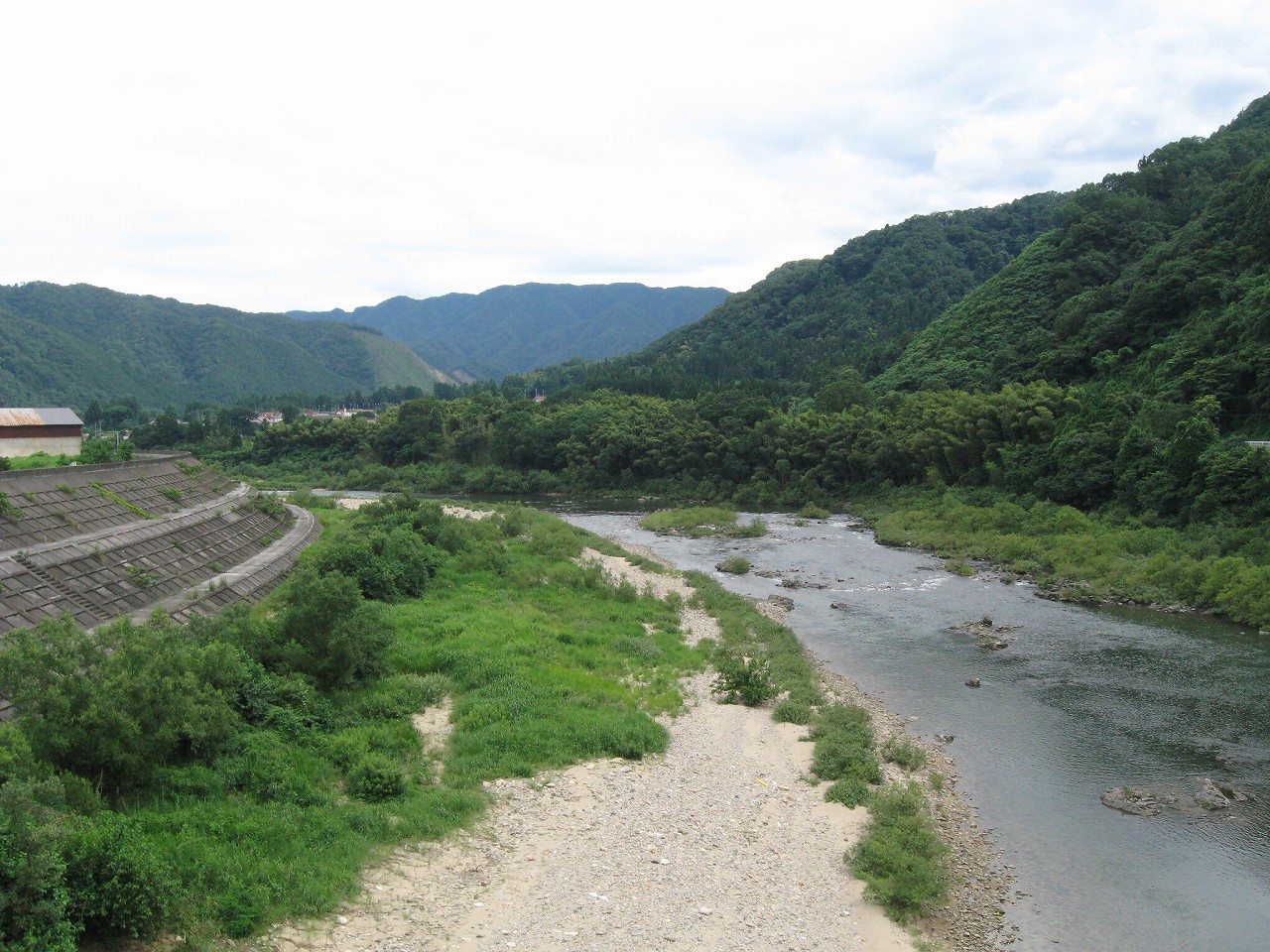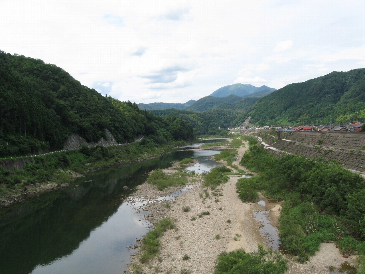 ずっと蝉がやかましかった。曇り気味なのにやたら暑く、ときに雲が薄くなって青空が覗く。目を転ずれば橋の向こうには暗い山が迫っていて、ふと気付けばまた陰っていた。陰ると蝉は少し大人しくなるはずなのだが、なんとなしそんな気がするだけで、全体としてはずっと山が唸っている。山という山が…だ。だってここは、山を越えてもまた山、山、山、そのことに気づくとなんか気が遠くなって、ふいにゾッとした。 橋まで歩いた、橋はそれがあるだけで何か文化的な感じがするから不思議だ。特にトラス橋ともなればそれは一層強い。けど、ここは赤ペンキもだいぶ色褪せてなんか廃感さえある。堤防は高く、それで川底は遠かった。浜原ダムが上流にあるので水量も少なめだ。かつてはここが水運の荷上場となっていたらしいが、近代河川化のため、かつてを偲ぶものは見当たらなかった。けれど遠く三瓶山が憧れのような薄い緑で頭部を覗かせ、一目で火山性だとわかるようなものだった。海に飽きたら、いちどは行ってみたいと思っている山だ。みな鎮まった濃い常緑の山よりも、あんなふうに爆発せる爽やかに磊落たる山の方か好かれるのだろうか、なんて思い、ため息をつく。