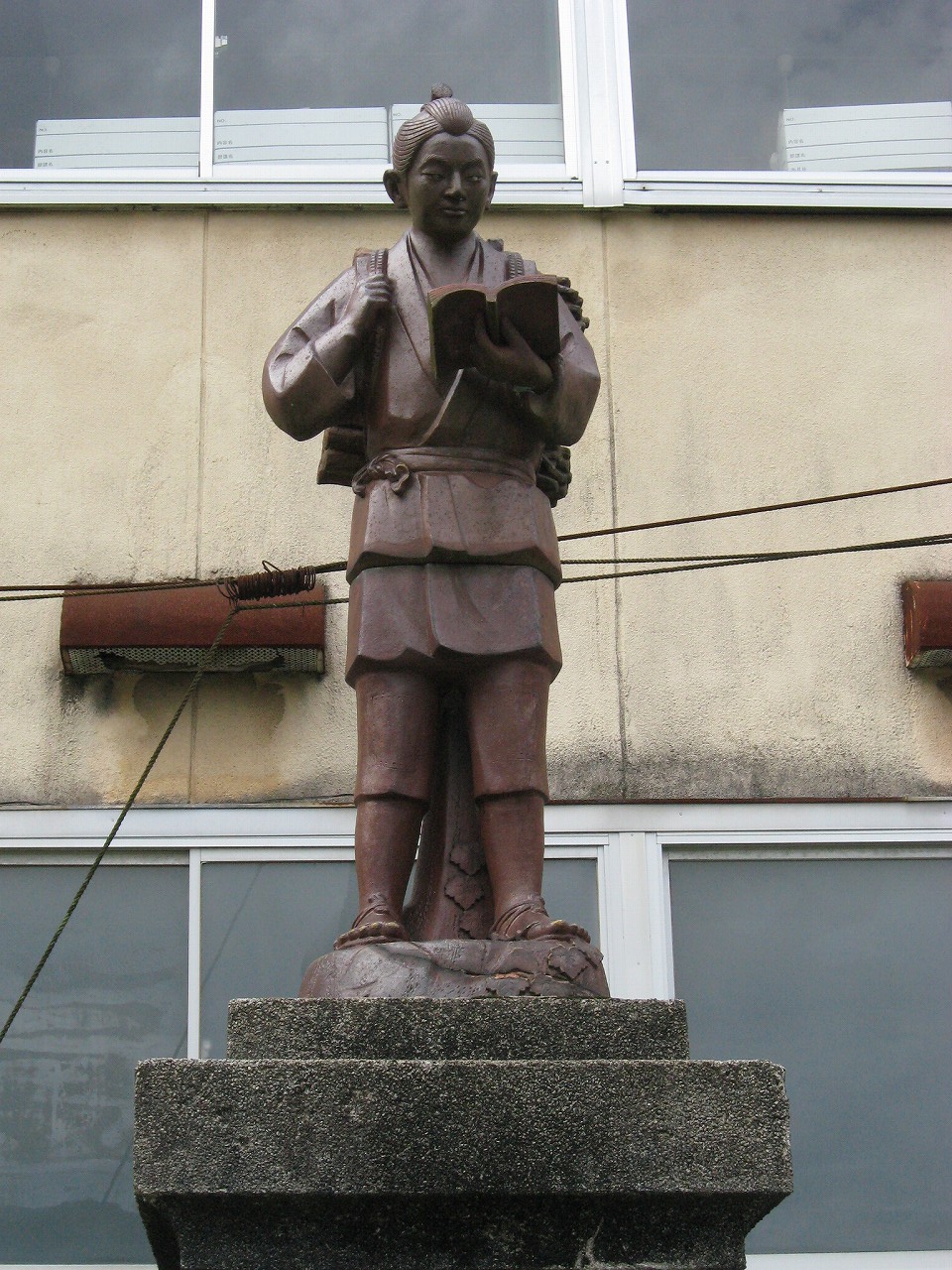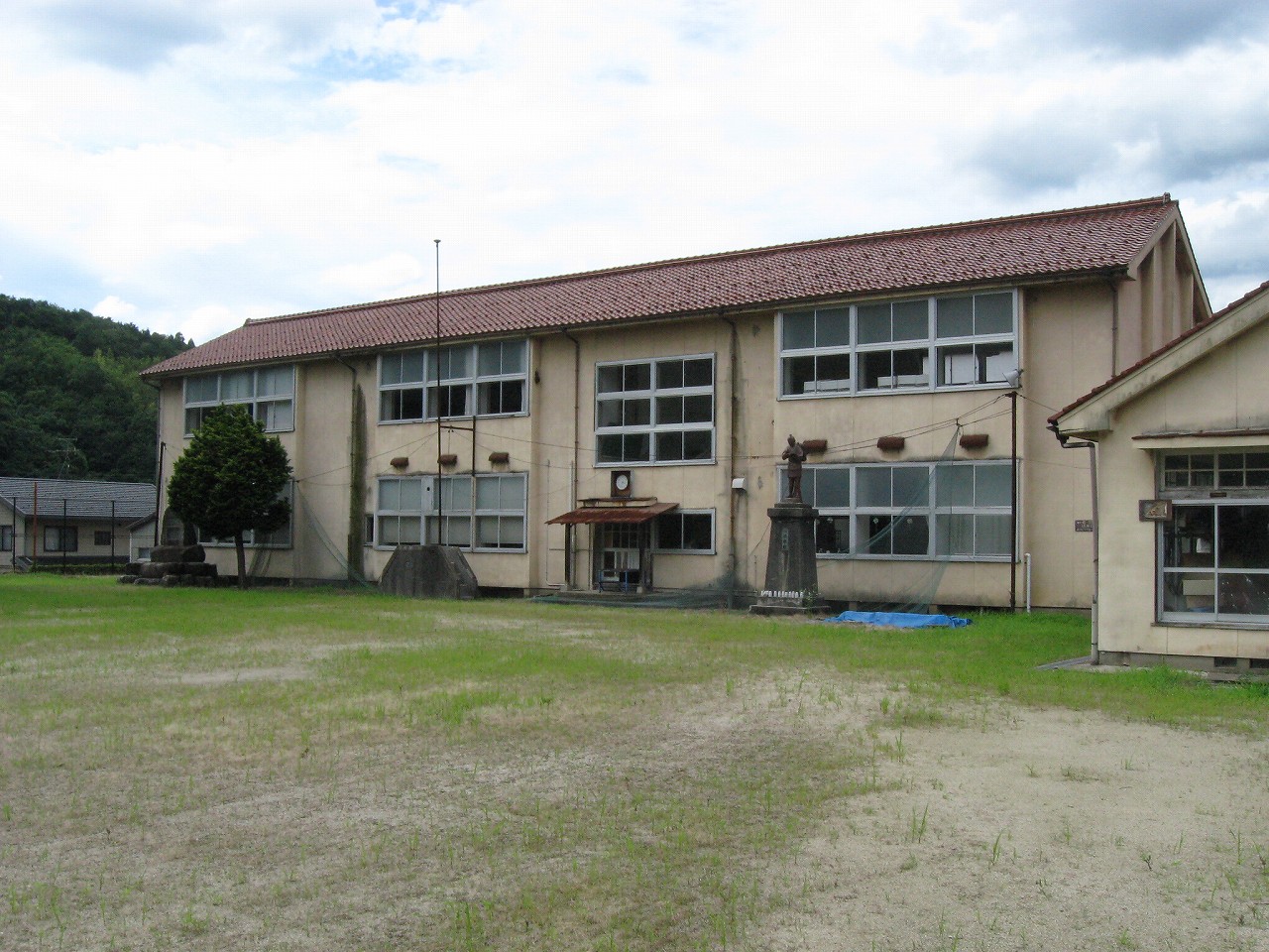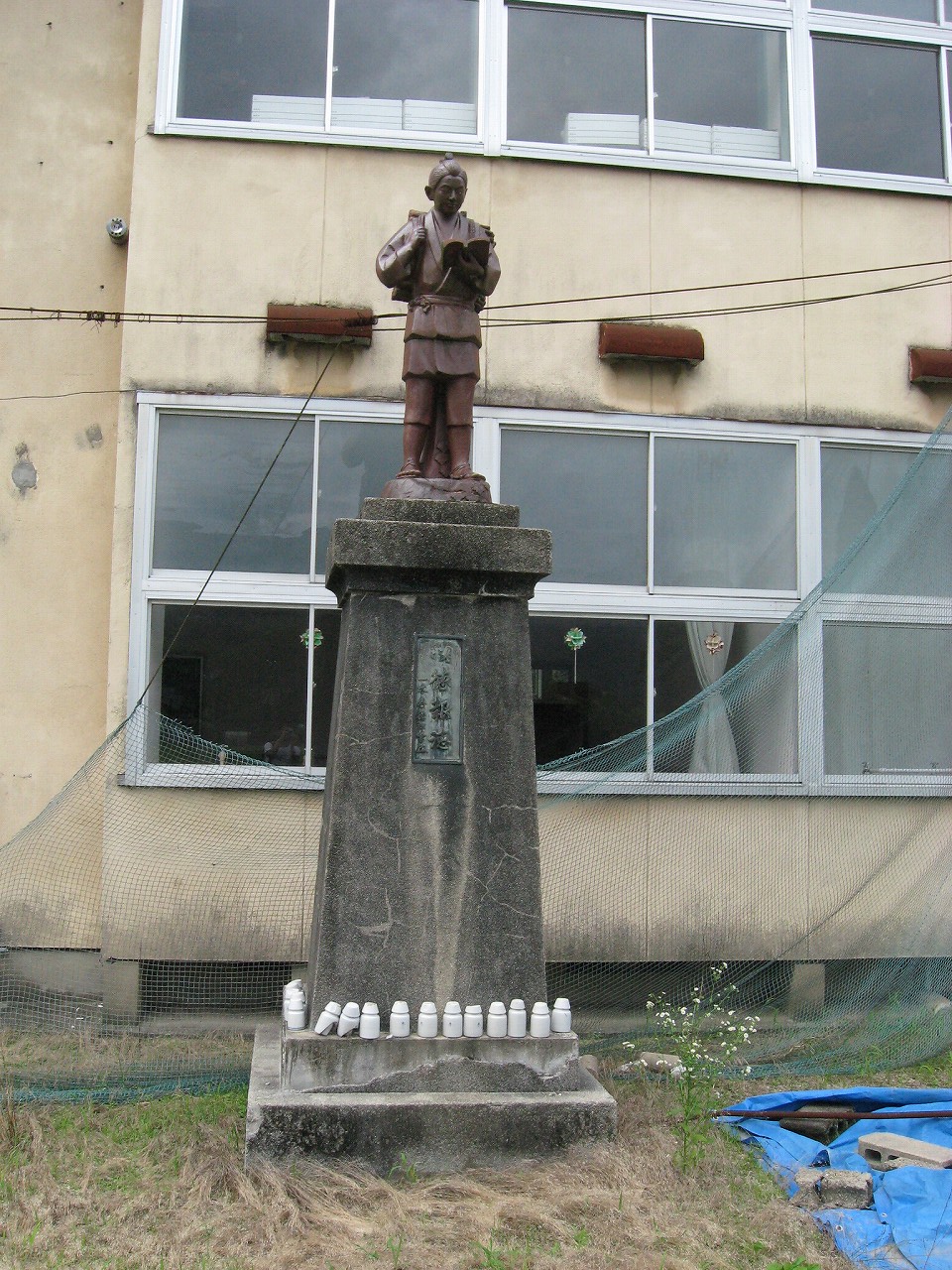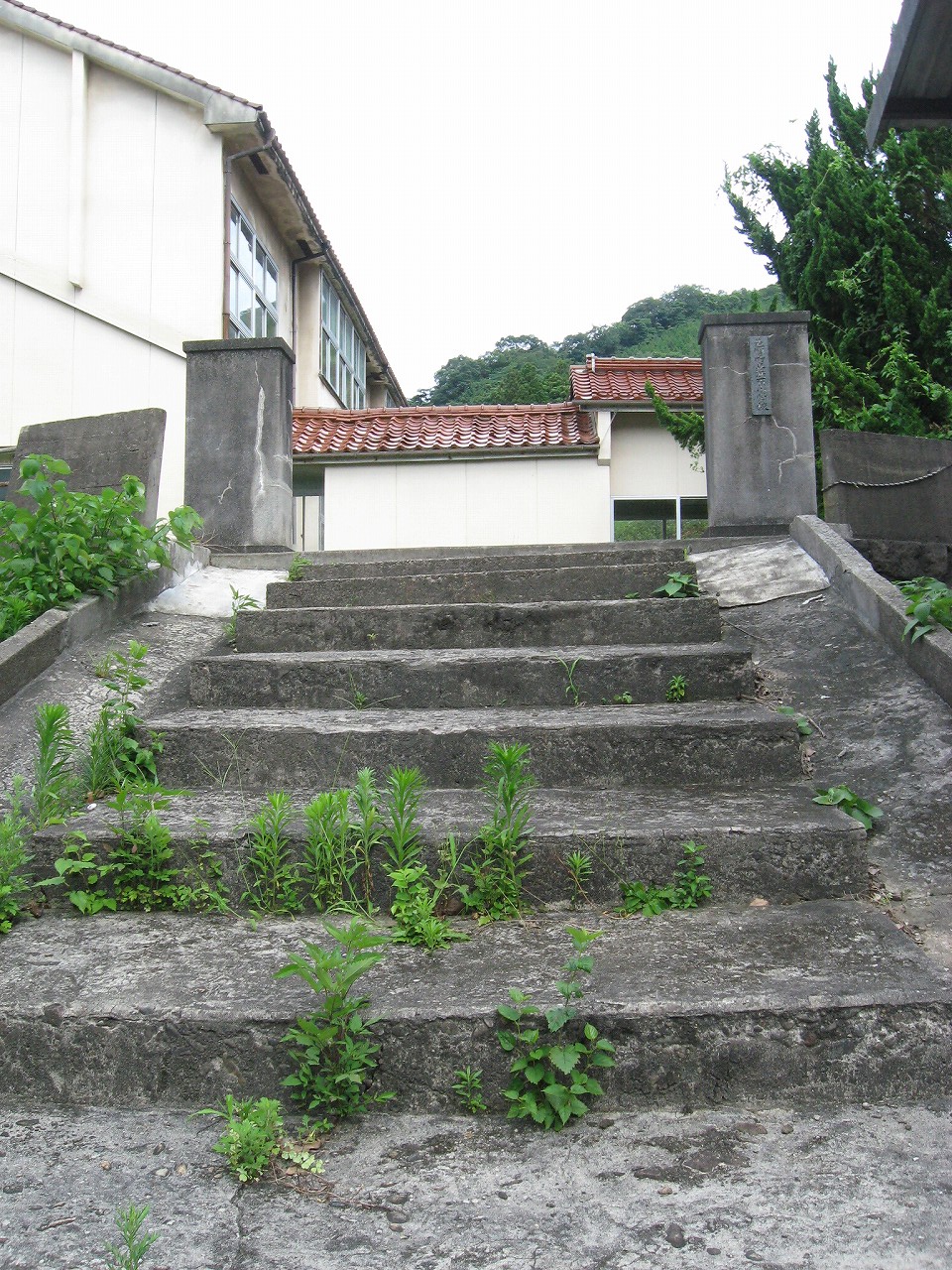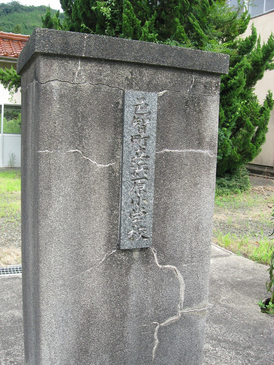 浜原本町を歩いていると、妙な階段を見つけた。上がっていくと、浜原小学校だ。現役かもしれなかったが、強烈に引き付けられて、中へと入っていった。木菟に陶製の二宮像やコンクリの演台があり、戦前からの小学校ではないかと思料する。もう足は止められない。小学校ほど魔窟というにふさわしいところもないのだから。