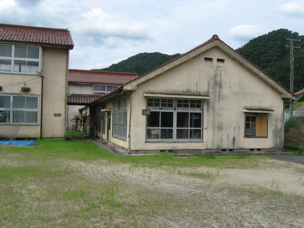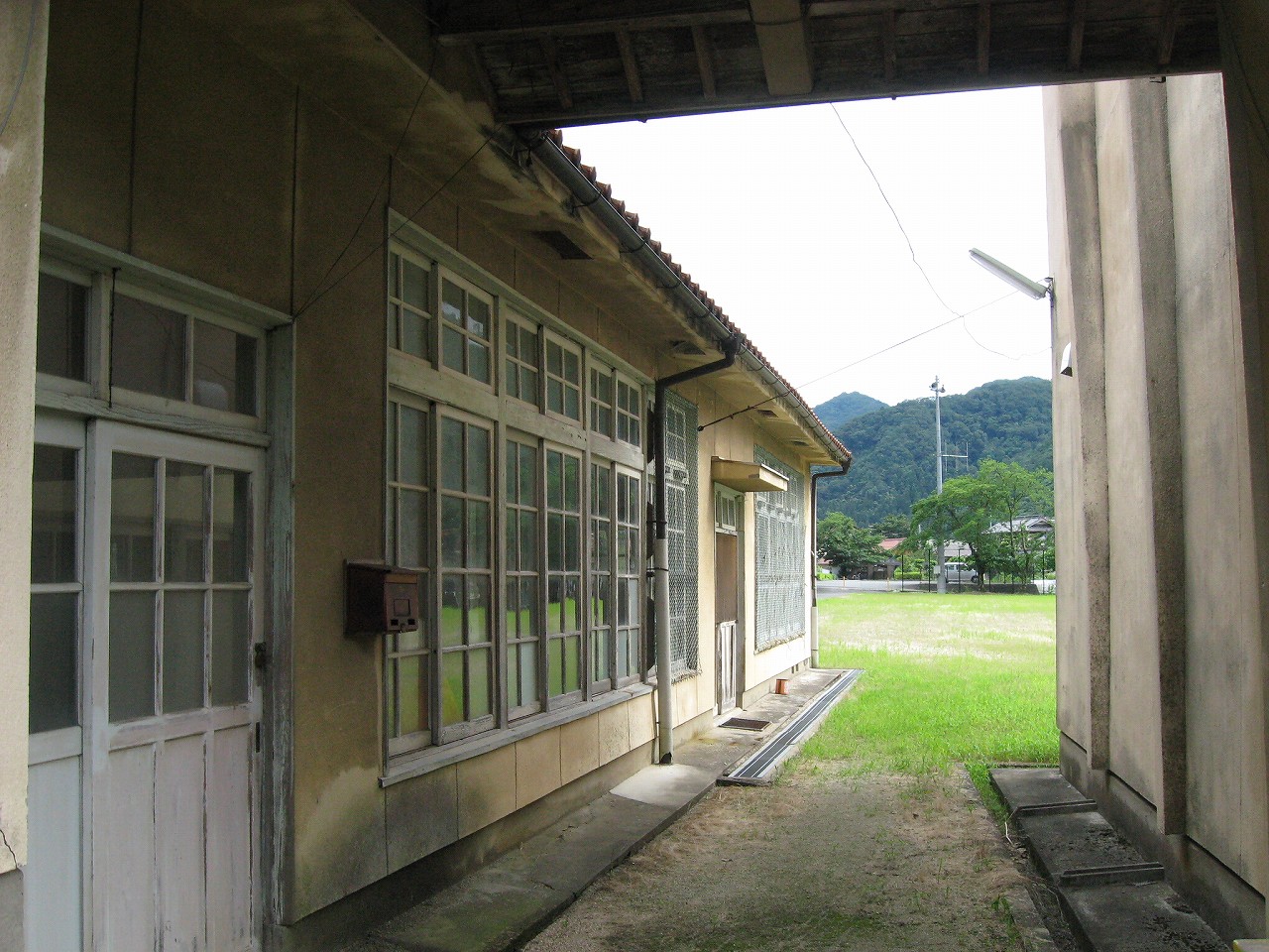 校庭もある歴とした小学校だが、もともとそんなに大人数はいなかったらしく、小規模な校舎だった。木造だそうだけど、モルタル塗りだったのであまりそうは見えず、ごく普通の校舎と受け取った。校舎という先入観のせいだろう。確かに渡り廊下などは屋根にいちいち石州瓦が葺いてあって、そこはほんとお屋敷のようだなと思った。