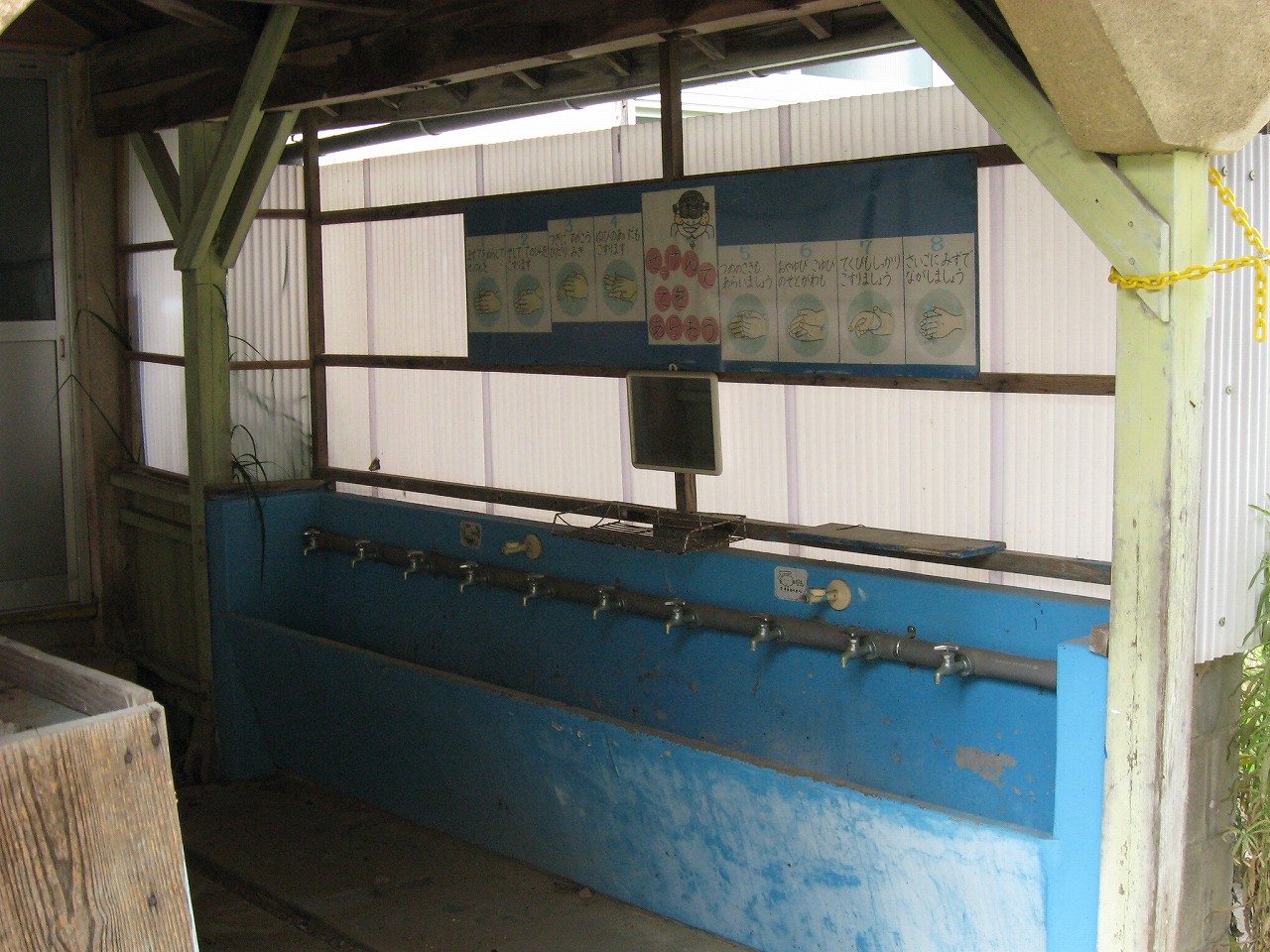 後者に囲まれた中庭にまで侵入した。別に叱られてもいいと思えたほど、惹き付けられたのだ。とにかく懐かしいし、驚きなのだ。青い洗面所にはいくつも蛇口が並び、保健の先生がしたためと思われる手洗いの方法が絵で描いてある。 「そうそう、こんな感じ…」 小学校は魔窟だ、と言った。私は小学2年生くらいのころ、何人かでよく資料室や倉庫に侵入して遊んだものだ。そこには戦前の備品、何十年も前の卒業式のパネル、入学式の手作りの大量の花、改定前の教科書、資料がほったらかしにされてあり、幼心にびっくりしていた。学校というものがこんなに歴史を蓄えているものなのだ、と。通常、校史というのは製本したり、一部の記念品や肖像画で残しておくものだが、こんなふうに放置されているのは本当に生々しく、それは何か知的な編纂を経たものよりも、強烈なパンチがあった。けれどそのことを一緒に入ったクラスメートらと共感したくても、だからなんだ、みたいな感じでにべもない。 侵入しても先生は別に怒らなかった。そんなところがおもしろいなんて変わっているという感じだ。それで私は担任に訊いてみた。 「なんでもっと整理しないんですか」 「あれなぁ、いうてんねんねんど、誰もせーへんねん。それに、整理はしたいけど、そんなこともしてられんのよ。」 ようはみんな忙しいのに誰が自分の時間を割いて整理なんかするんだ、ということだ。 そんなわけで、校史は具体的なモノによって、集積されていっていたのだった。 それに、小学校は六年間も在籍して、しかもその成長の差が著しく激しいし、クラスにはちょっと富める者も中流も、成績も様々、職員室には魅惑的な専門書や文具、学用品のサンプルが溢れている。これが魔窟でなくて何だろう? ともかくそんなわけで、私は割と早いうちに小学校というものに畏敬の念を抱いたのだった。いちばんいいのは…毎日問題が起きるので、さきほどの資料室のようにどうでもいいことは放置されていくという点だ。本質的なことだけが進んでいくので、モノや校舎はほったらかしになり、実物としての歴史が無意識のうちに積層していく。 そういうなんでも飲み込んでしまう小学校が、今、ちょうど、理想の状態で、僕の目の前に裸体で展開されている。 もうわかっていた。ここは閉校している、と。