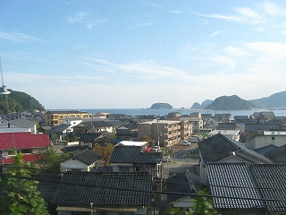 車窓にて。香住市街の風景。
