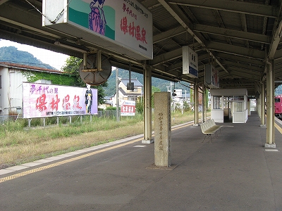 駅の暖簾は凝ってあって、重みのある 上等な染めものだった。ただ掛けただけのものに過ぎないのに、人がいるような生き生きとした表現や、有人であることのこだわりが見て取れた。建物も表情に乏しい扁平な陸屋根のものだが、この辺りが変わらないにしろ、昔のままにしろ、それらをできる範囲で生かしている町のように思われた。