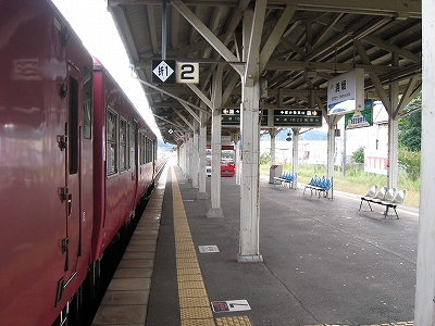 駅舎内にて。
