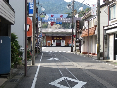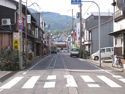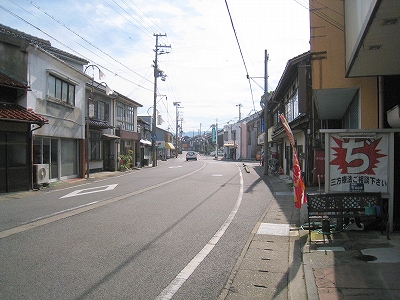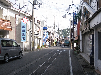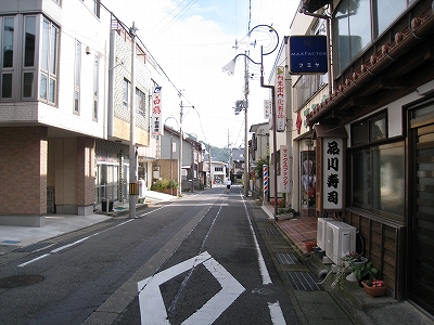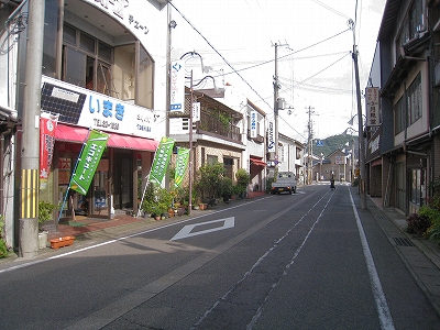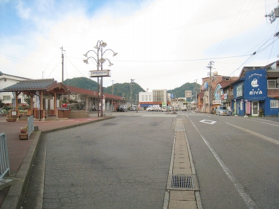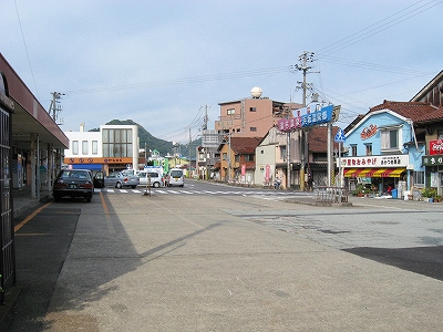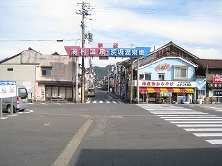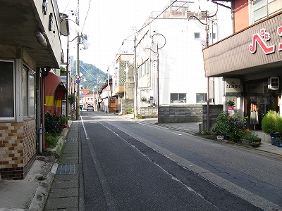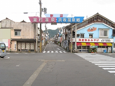 この道を行くと温浴施設のユートピア浜坂へ。遊覧船乗り場のある浜坂港もこちらだが、駅から意外と遠いので、バスを考えてもいいかもしれない。