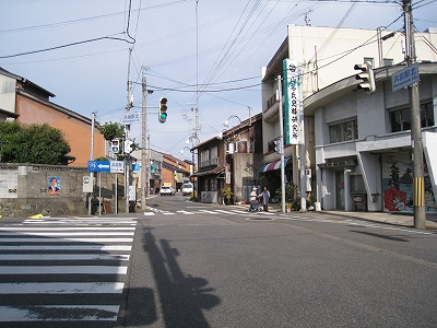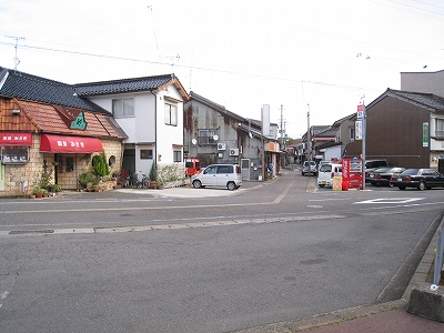 海の方に向かう道。三叉路にて。