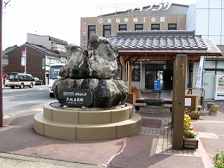 駅前にて。