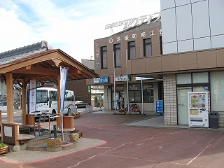 右手アクティブプラザは湯村温泉などへのバスの待合所でもある。