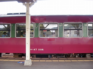 この列車は鳥取行き。えもいわれぬ朱色をしている。