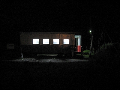 板張りで、背中は痛く、寝返りは打つとしたら、そのたびに目が覚めるだろう。目覚ましはやや遅めの設定となる。始発が六時五分だった。「逆に考えればこんなに周りがないとなると心置きなく寝れそうだな。」少しうきうきする。やがて音もなく電気は消えた。こんなところに人がいると思う人ももういなかろう。ただ静かに朝を待つしかない。