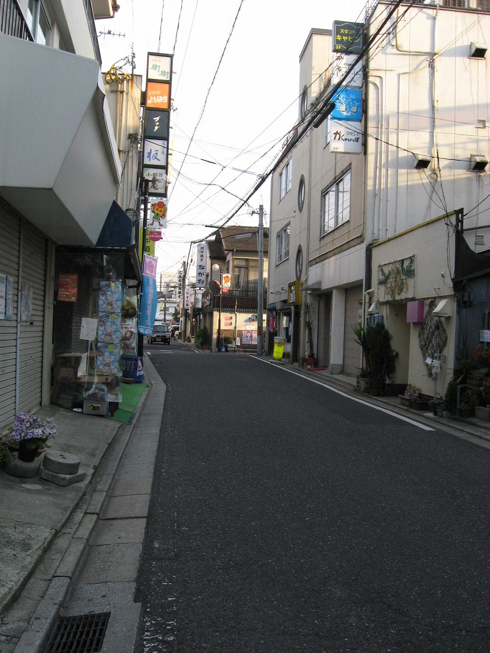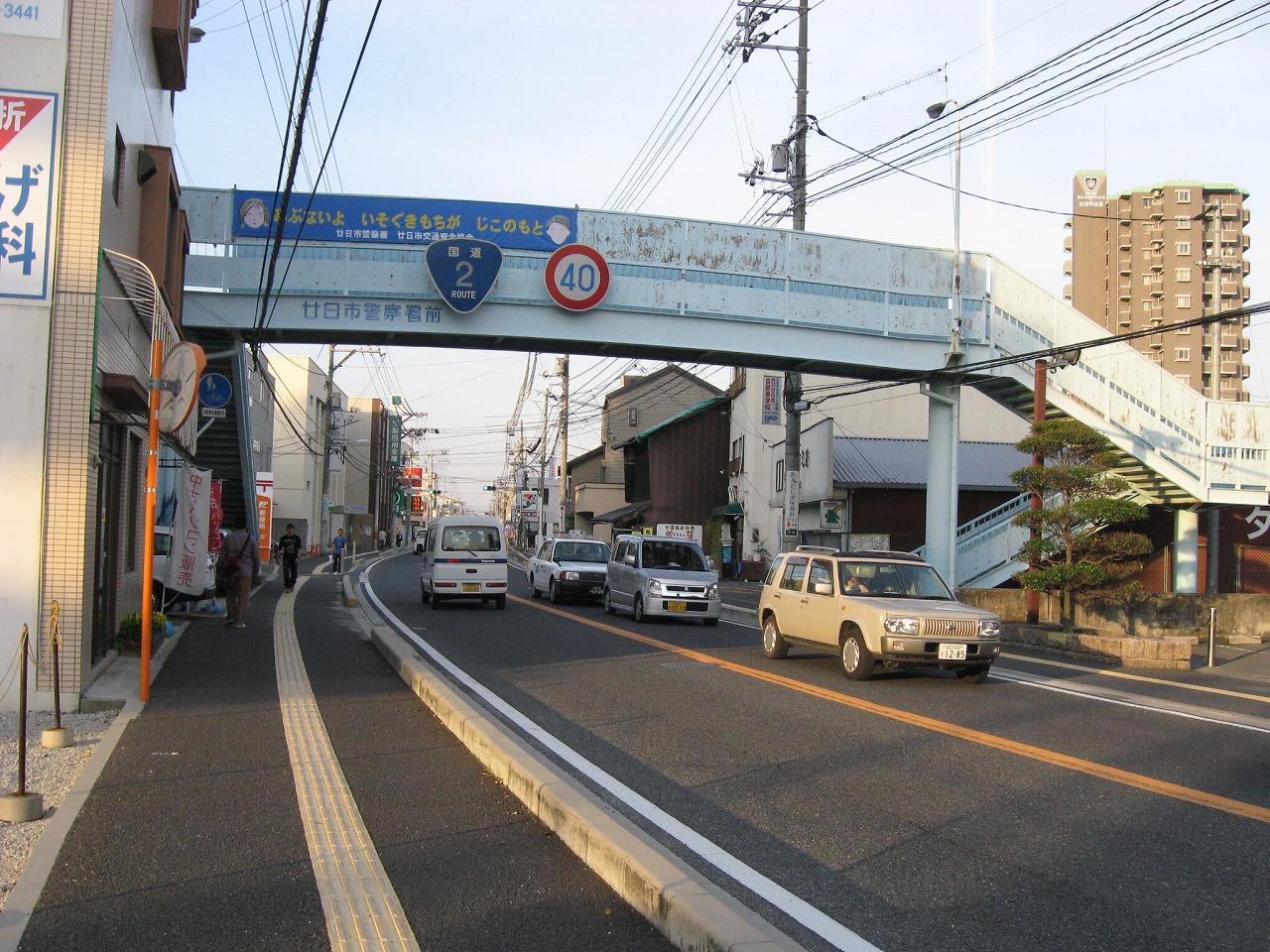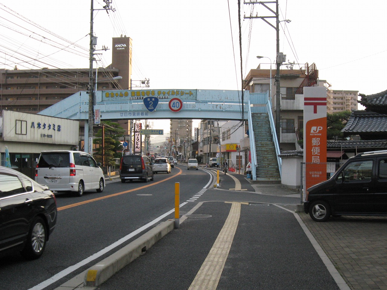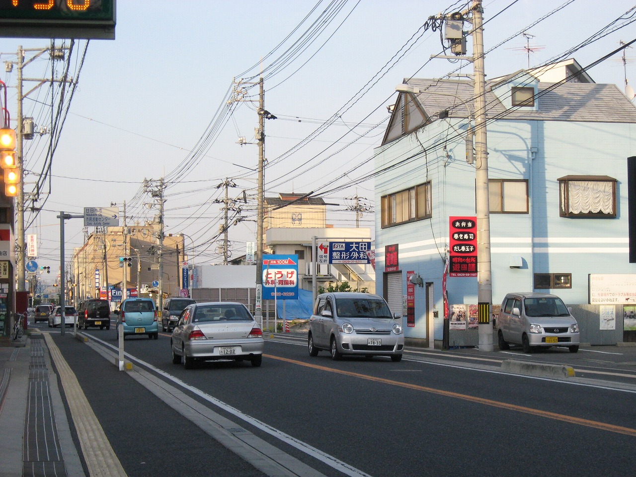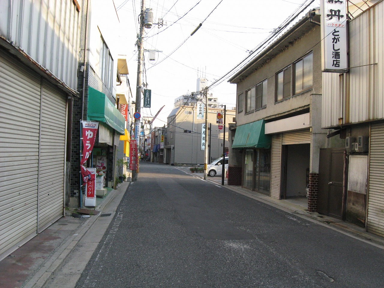 今は静まったスナック街を歩き切ると、2号を掲げた国道に出合えた。クルマで旅したらこんな道を延々と進むのかなんて夢想する。