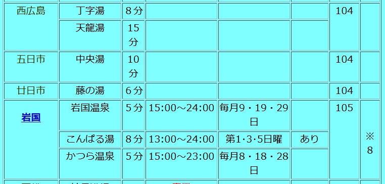 廿日市駅に戻ってきた。もう日が落ちて、駅の人模様もかなり落ち着いていた。風呂は? そう、ね。実は…ここがダメだったときのために、岩国で入ることを考えてあった。あそこは3件も銭湯があるから入れないということはなかろう、と。ただ到着時刻が20時とだいぶ遅くなるので気が進まなかった。