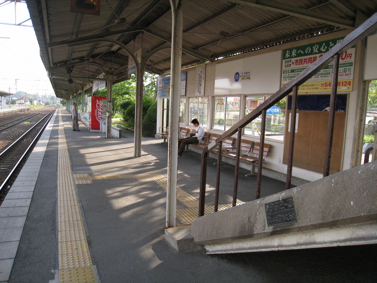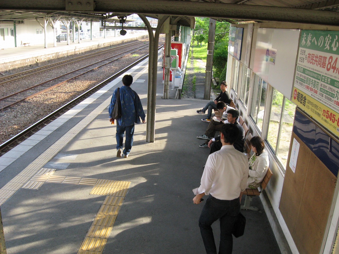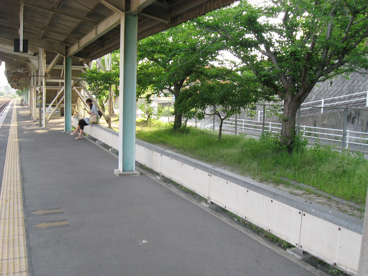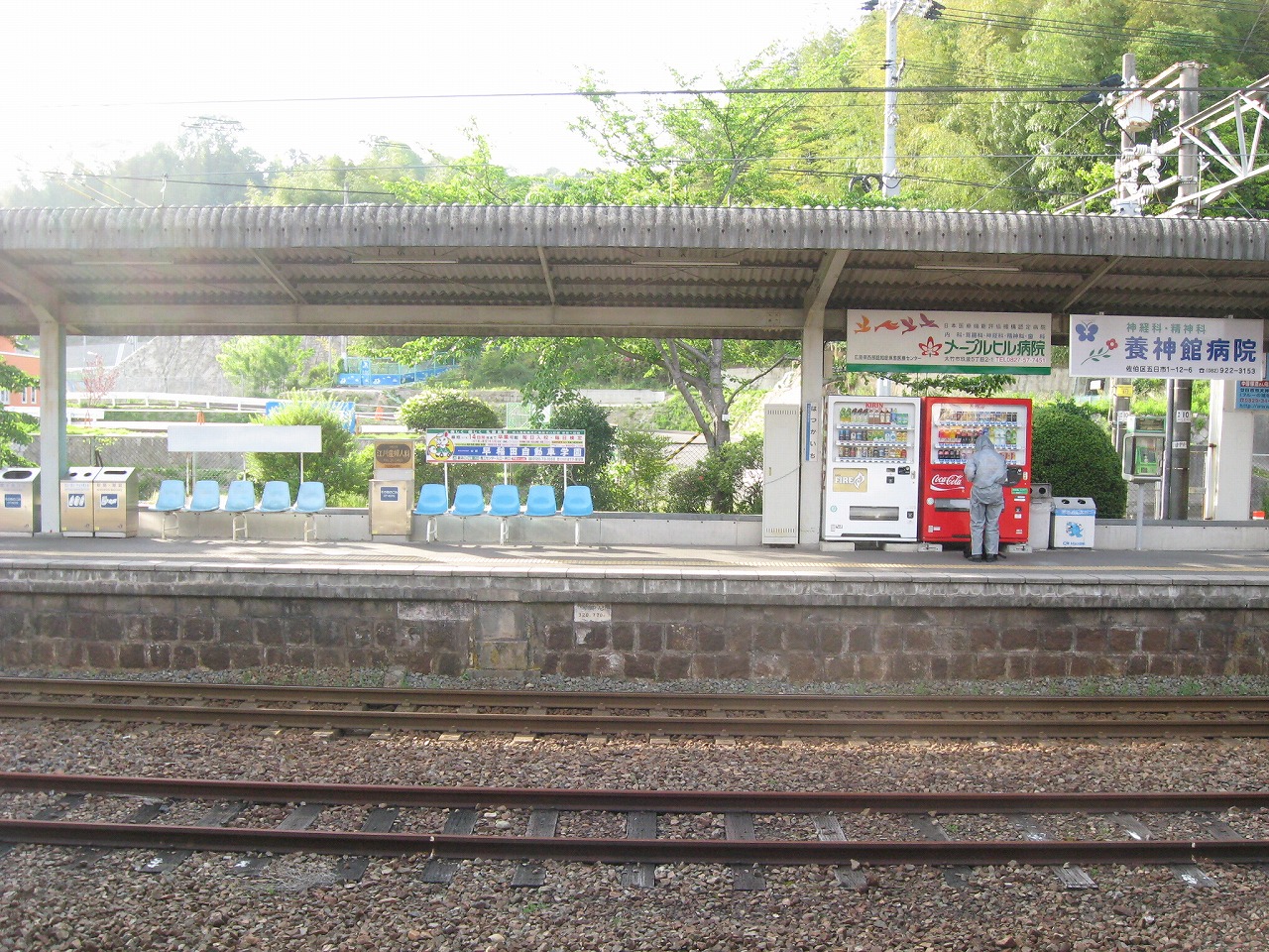 都市近郊だから、人は常に駅に二三人はいた。夕暮れだが、ラッシュの様相はない。けれどなんとなくタクシーも出入りして、気の急く感じはしている。あたりは小町といった風情で、石州瓦を積んだ連棟にお好み焼き屋やメガネ屋が入っていた。どちらかというと住宅地で、暗くなってから帰ってくる酔漢のお父さんが思い浮かぶような町であった。