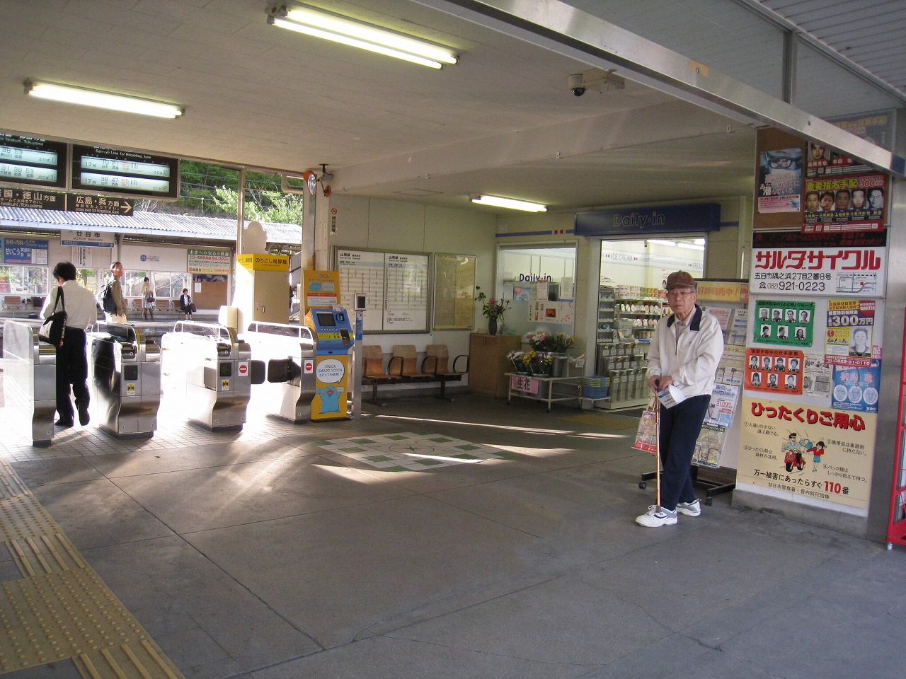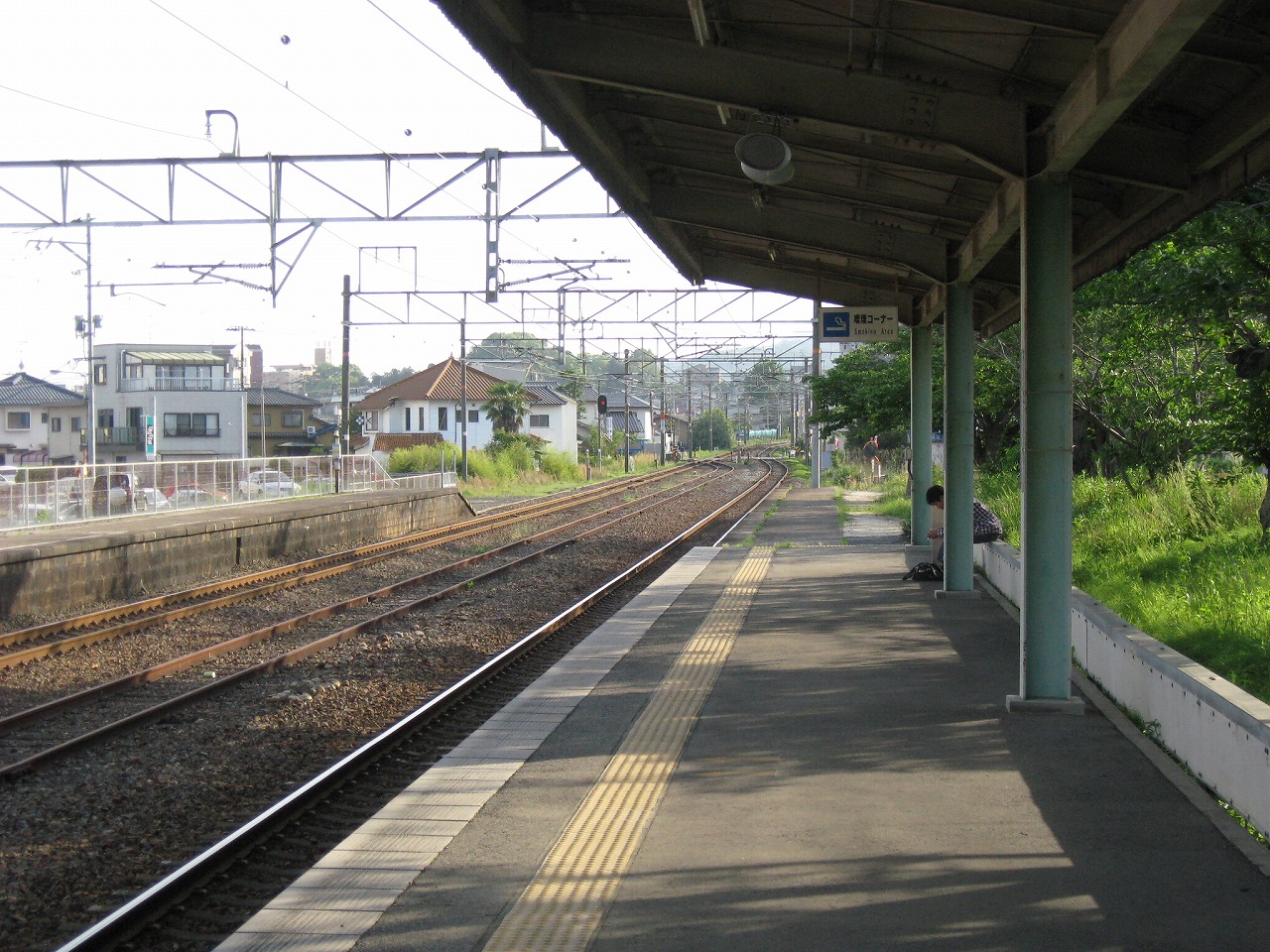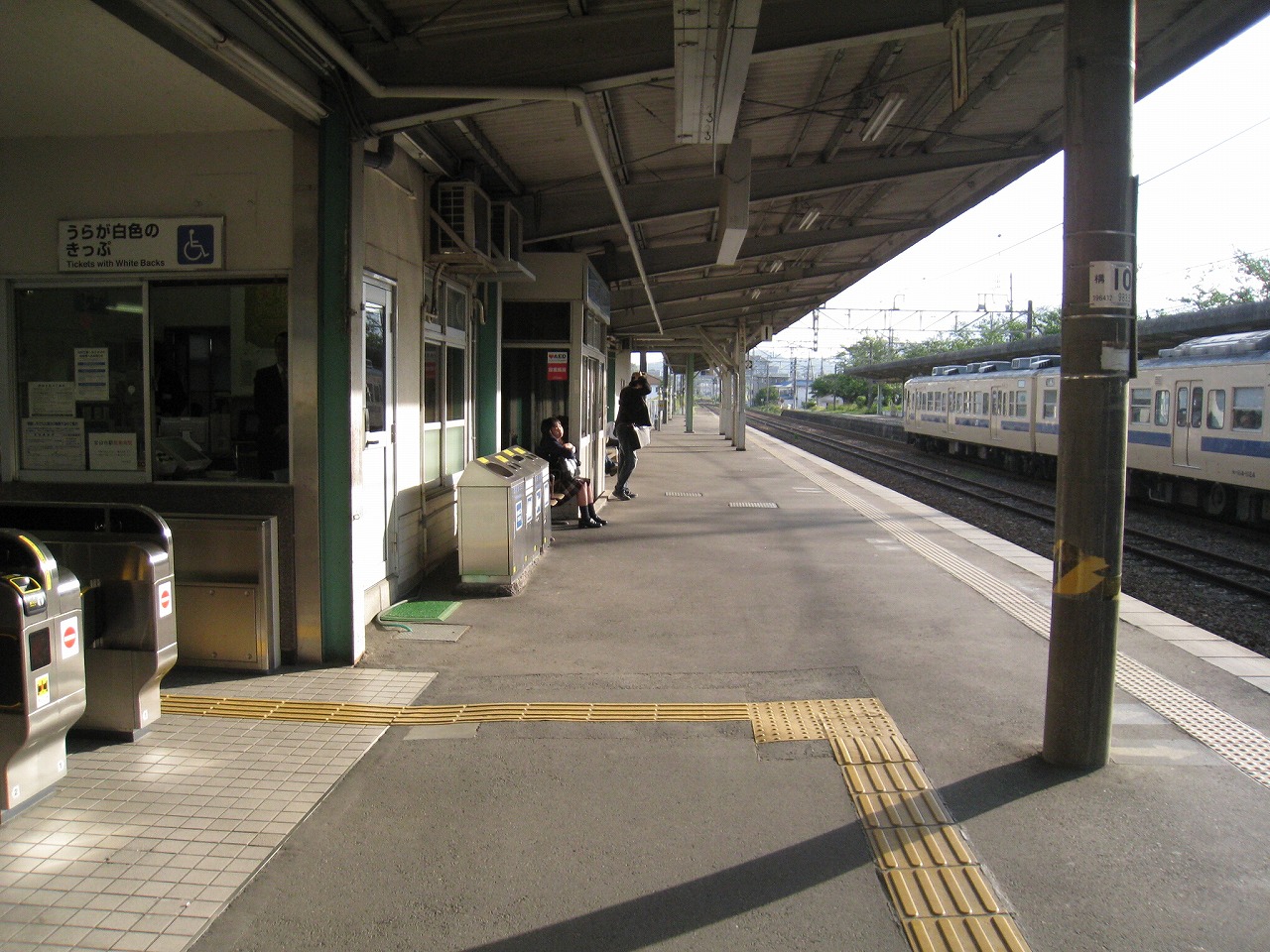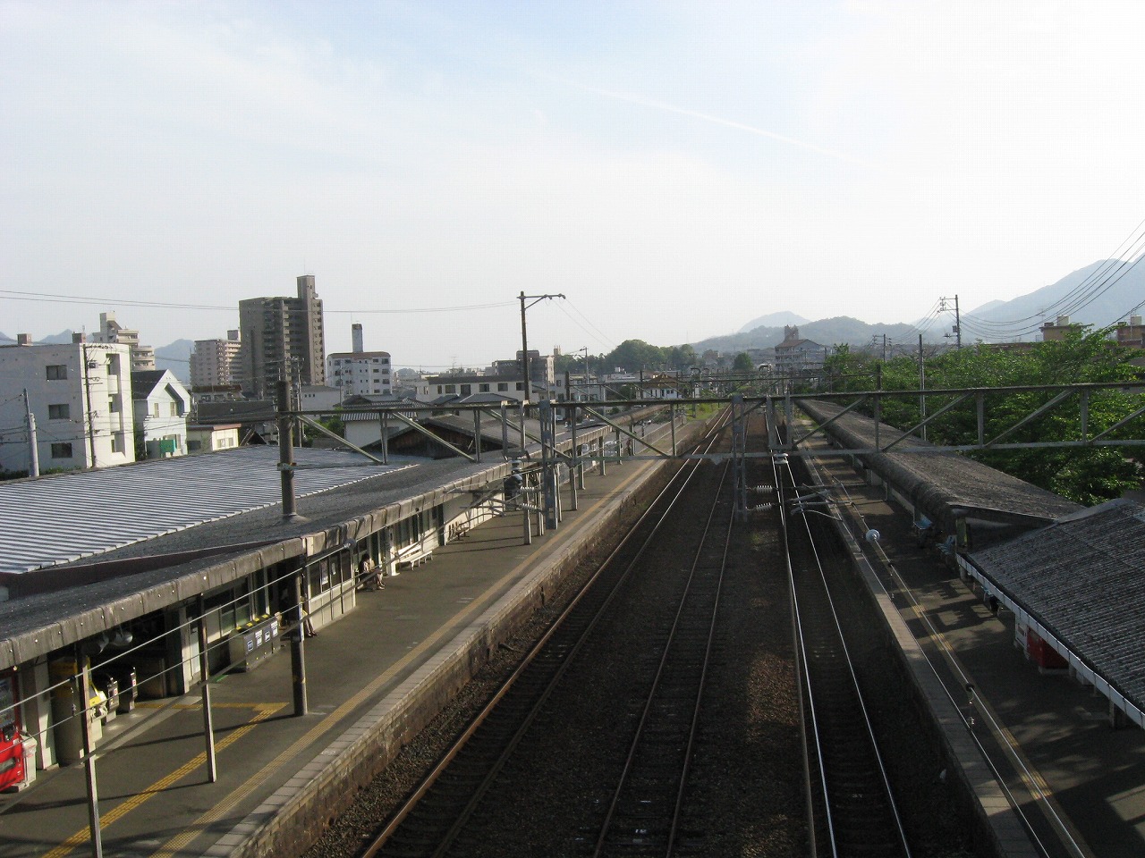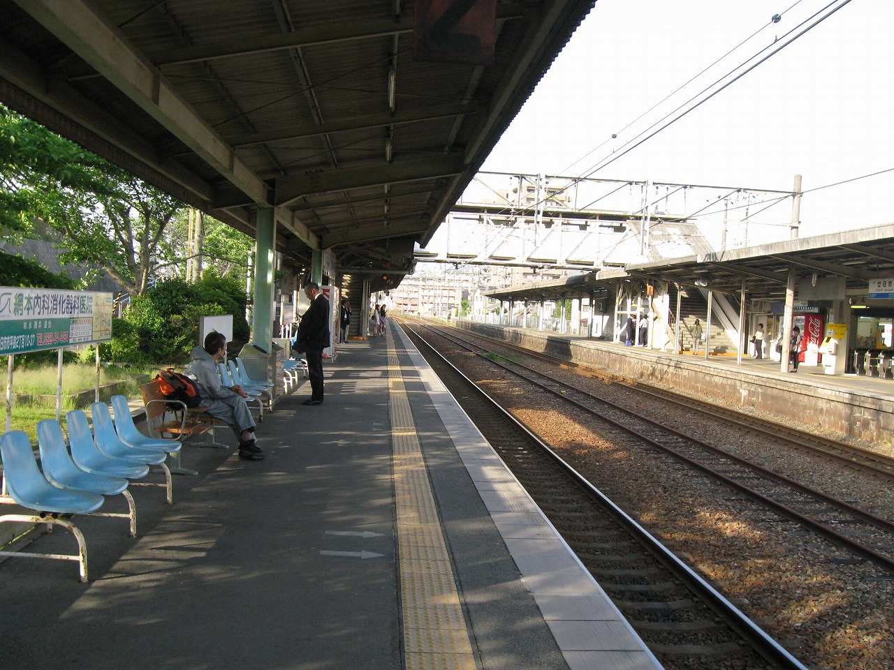 都市近郊だから、人は常に駅に二三人はいた。夕暮れだが、ラッシュの様相はない。けれどなんとなくタクシーも出入りして、気の急く感じはしている。あたりは小町といった風情で、石州瓦を積んだ連棟にお好み焼き屋やメガネ屋が入っていた。どちらかというと住宅地で、暗くなってから帰ってくる酔漢のお父さんが思い浮かぶような町であった。