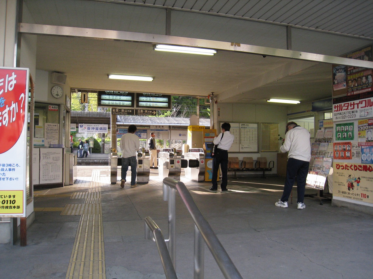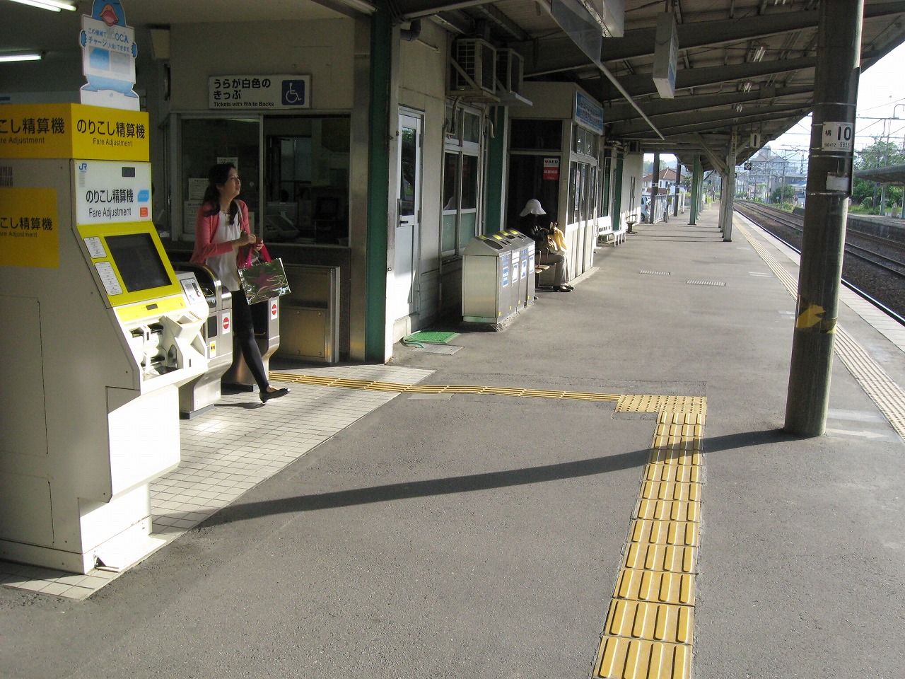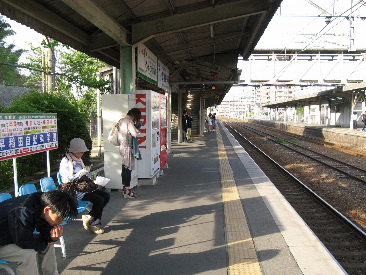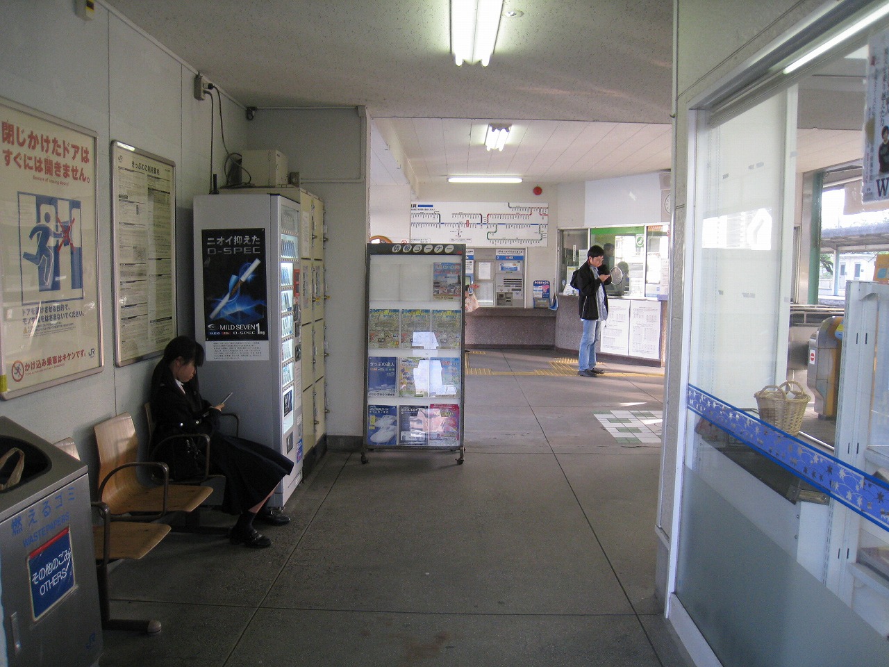 都市近郊だから、人は常に駅に二三人はいた。夕暮れだが、ラッシュの様相はない。けれどなんとなくタクシーも出入りして、気の急く感じはしている。あたりは小町といった風情で、石州瓦を積んだ連棟にお好み焼き屋やメガネ屋が入っていた。どちらかというと住宅地で、暗くなってから帰ってくる酔漢のお父さんが思い浮かぶような町であった。