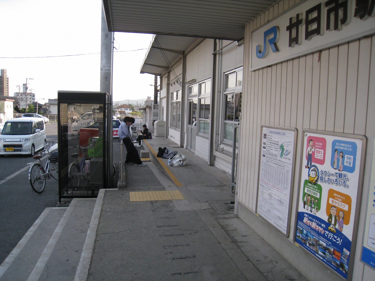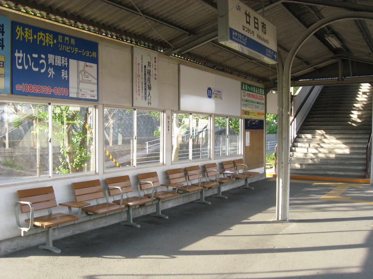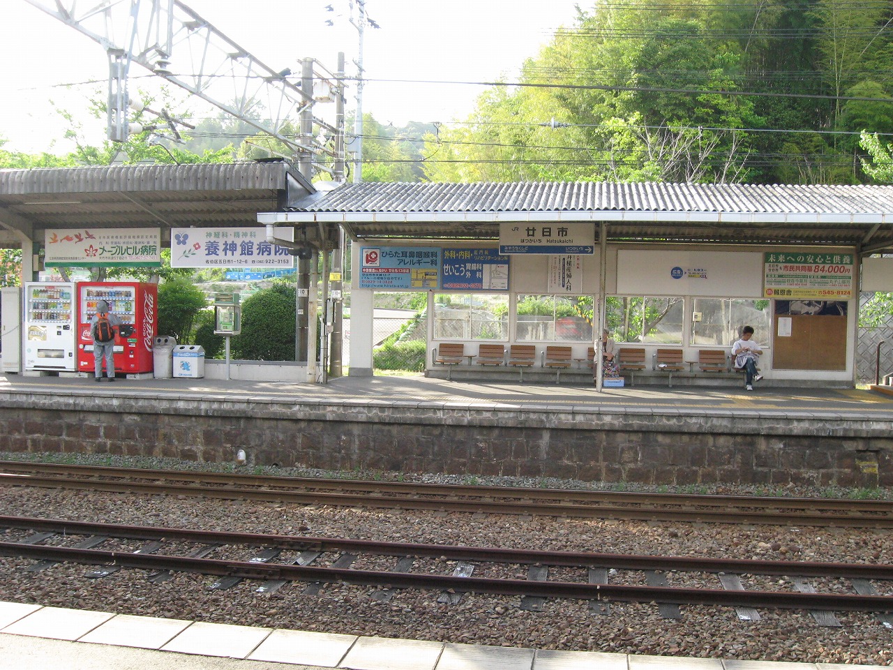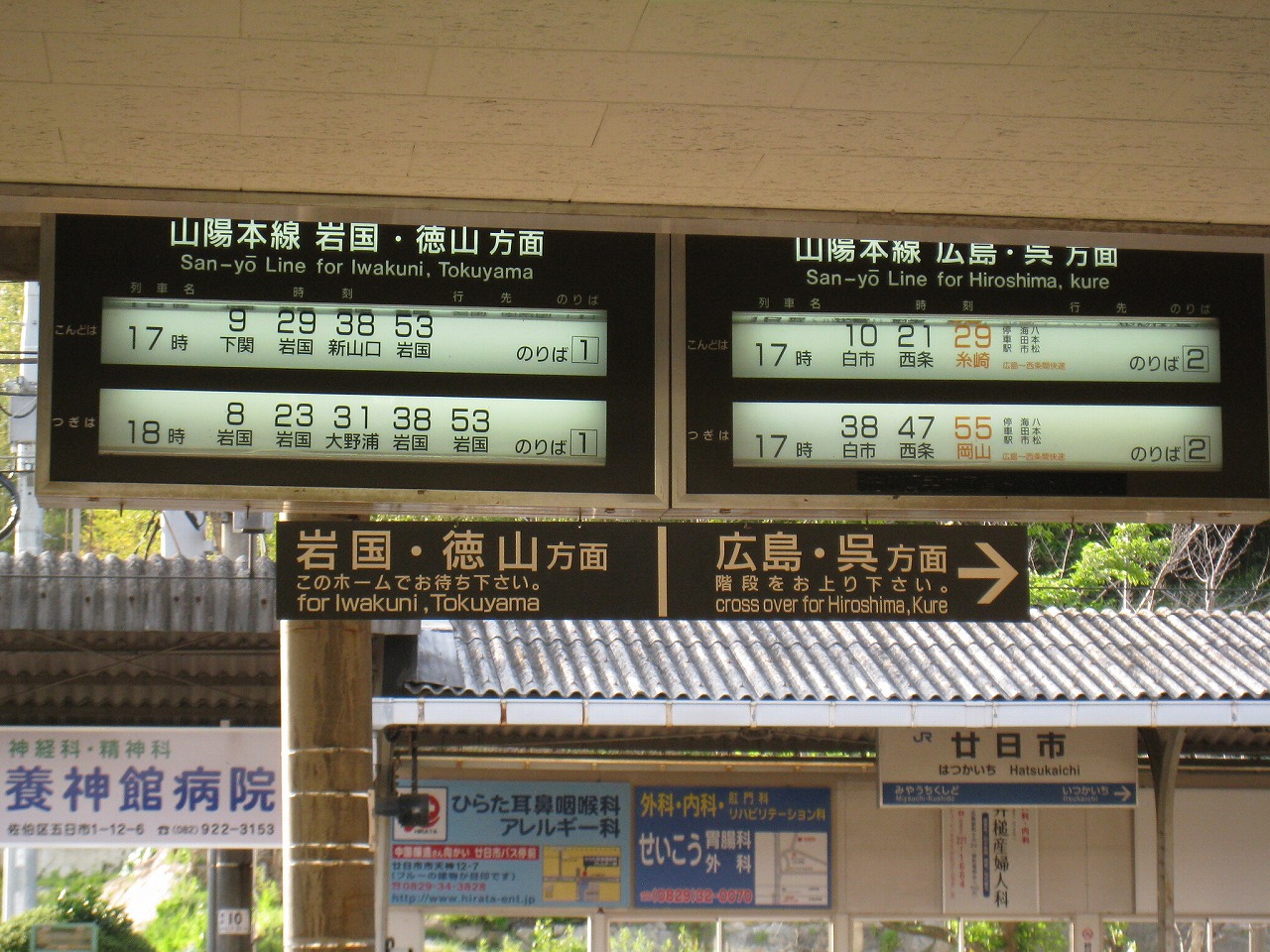 西広島から出た列車は混雑していて、多くの人が旧車の中で立って、つり革につかまっていた。自分もその仲間である。新井口という絶対読めない駅を僕は人々の腕の隙間から羨望の眼差しでやり過ごした。どうしてあれが初見で"しんいのくち"と読めよう。 難読地名は地の人にとってはもはや空気みたいなもので意識に上ることもないのだが、その難読性を指摘されるとなぜか嬉しいものだ。地元という幻想の連合体の、合言葉である。 降り立った廿日市でも、西日に煽られながら大勢の人が下車した。まだまだ広島近郊区間だ。けれども列車が去るとこっとりと日が暮れるような時間を駅は歩みはじめていて、この日の最後の駅として僕に安らぎを与えてくれた。
