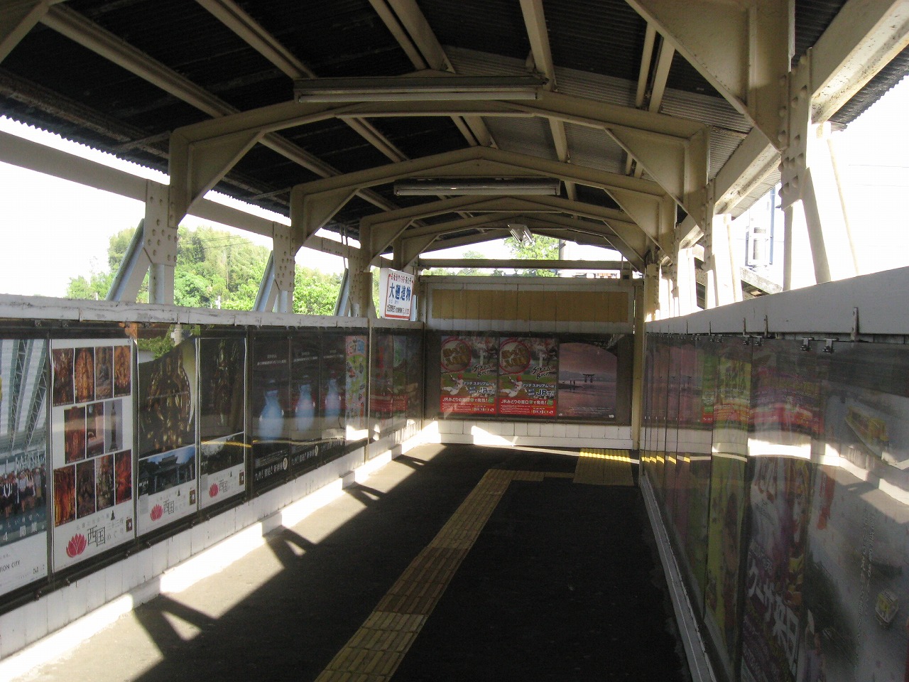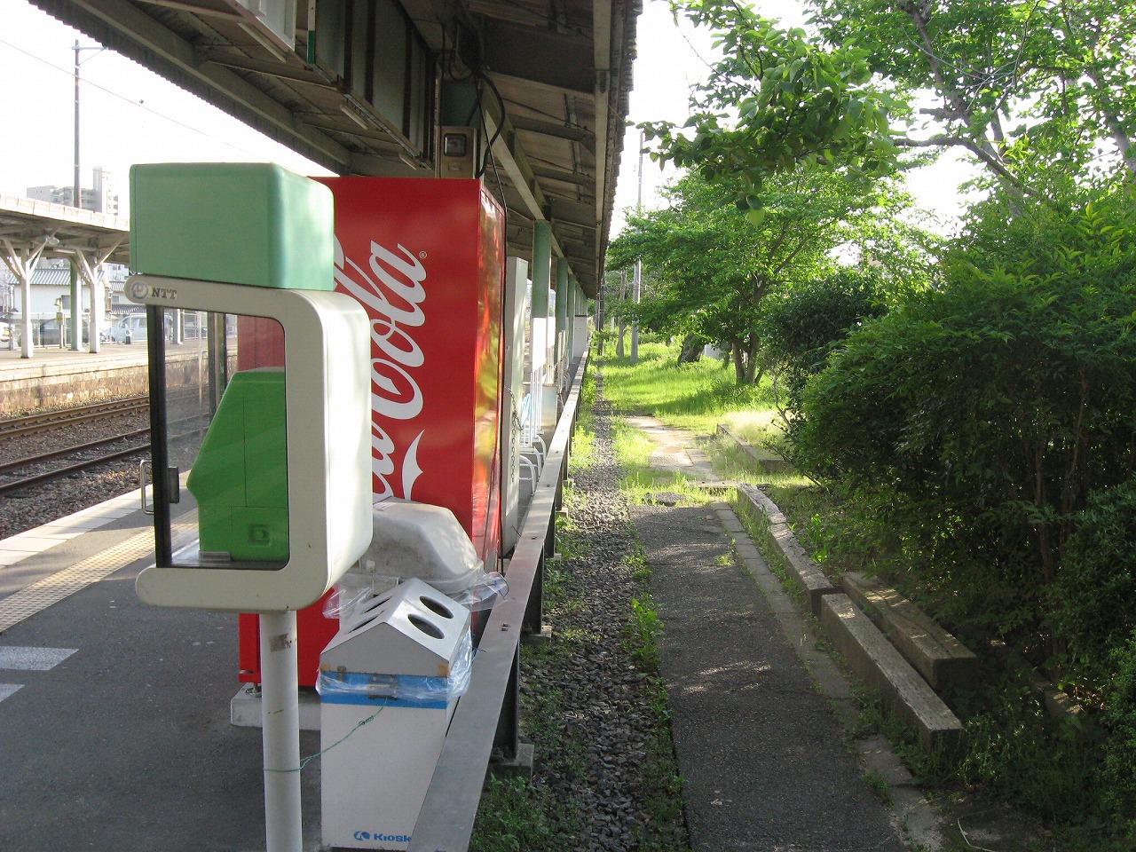 文字通り廿日市駅のその上りホームは平和だった。静かに緑樹はそよぎ、日差しは弱まり、涼やかになりはじめている。さっきまで滞在していた西広島の騒々しさがウソのようだ。民主化を語るいろんな色の広告やコカ・コーラ自販機を、さながら模型の中の小物のように、つかの間の休息を与えてくれるものとして僕は愛でたてた。 コーラを飲まなくなって何年たっただろうか。スーパーから500㎖が消えてから、このままではだまされると思い、完全にその飲水を断った。いったい誰が値上げした価格で害をなすだろう飲料を買うだろうか? 鉄道旅の合間にコーラで空腹を癒す、そんな楽天的なフェーズは20年代の今となってはとうに消えてしまったと僕の認識するところの事象なのだ。 けれど、このときここにあるのは、確かに戦後の平和のひとときだったし、それを構成する小物たちだった。ゆるやかな光がまわっていく中で、ホームに佇んで微風をあじわい、まどろんだ。