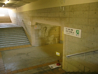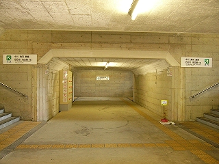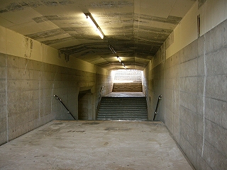 地下通路の中ほどにて、振り返って。突き当りの階段から下りてきた。