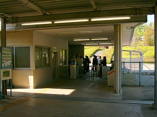 しかし色褪せたフェンスが間にあり、いったん改札を出ないとだめなようだ。