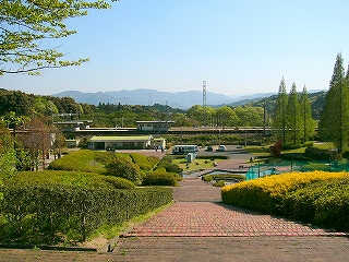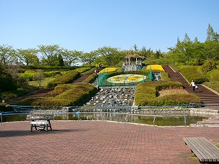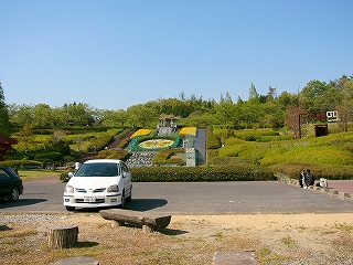 斜面の大きな円い花畑。駅を出たらぜひともあの斜面の階段を上ろうと思った。