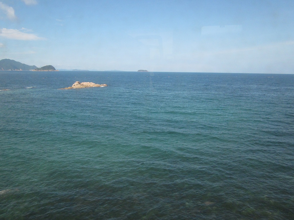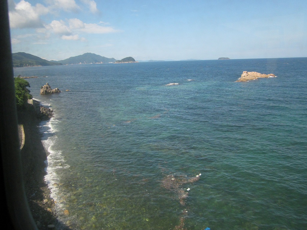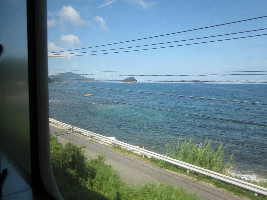 車窓からは目もくらむようなハワイアン・トロピカルな輝かしいエメラルドの海面。これからこんな長い旅が開幕するのかと思うと翔一は何もかもが好意的に捉えられた。蜜柑色のガードレールが激烈な夏の山口の風土に合っていて、翔一は意想外だった。