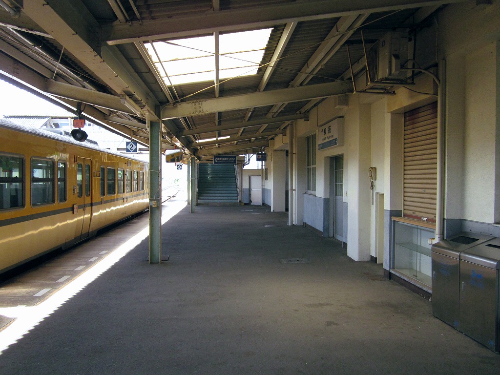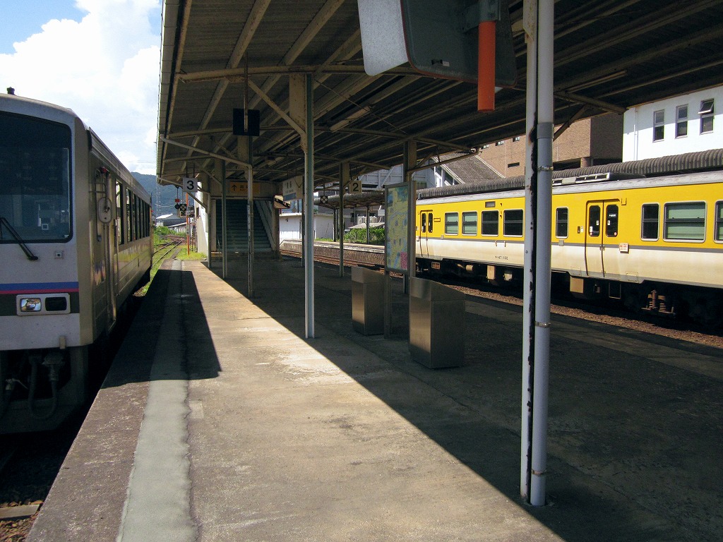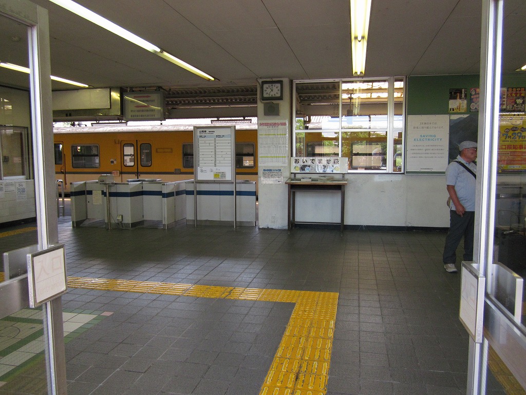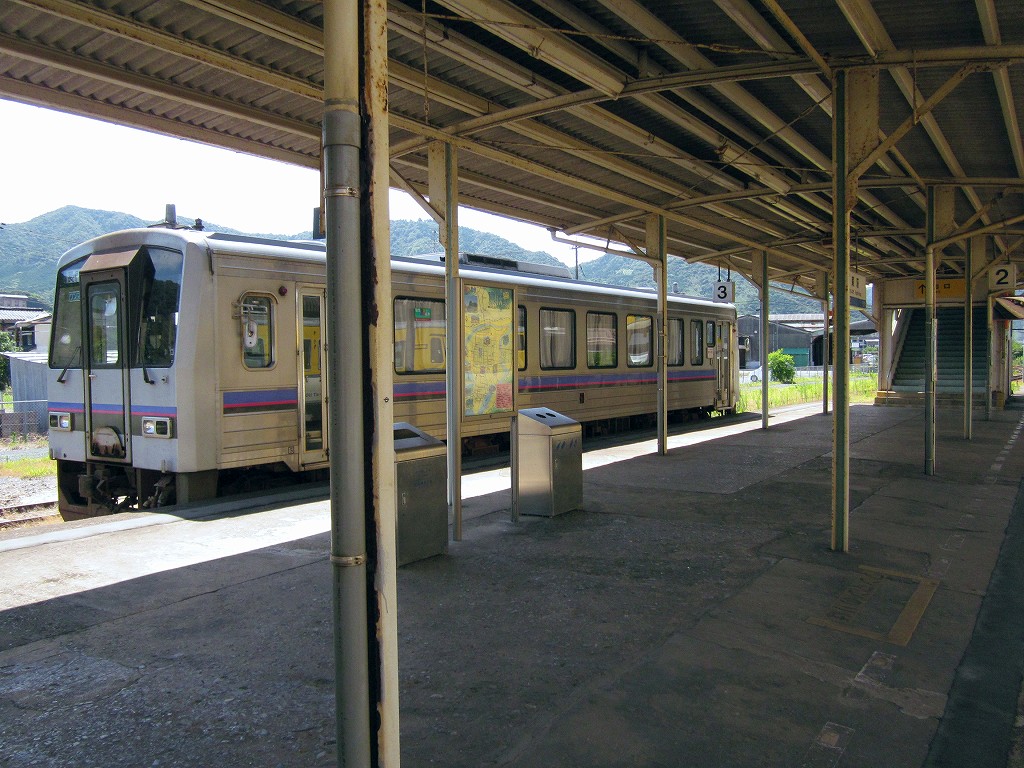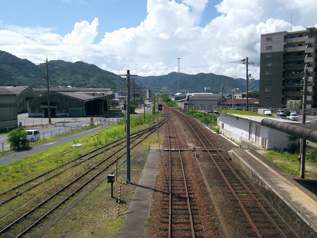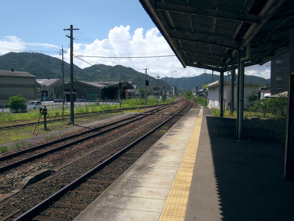 東萩は雑草で構内が荒れていて、またとんでもなく古い木製の乗換案内などがぽつんと残っているようなところだった。はっきりていって、海の感じはまったくなく、そこは山の山口の駅である。そもそも萩という地名も、ただただ暑苦しいものだった。