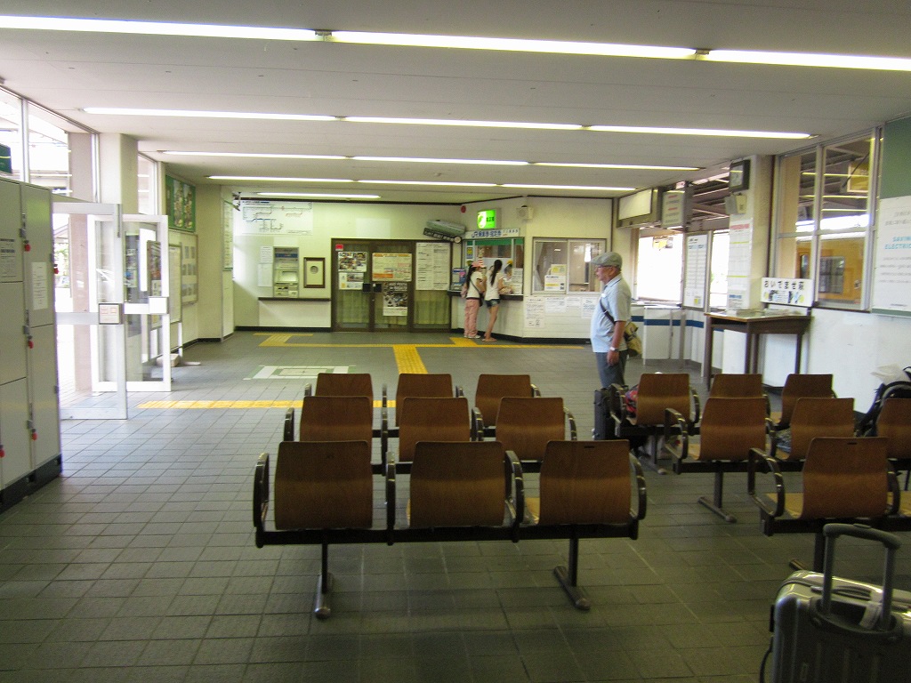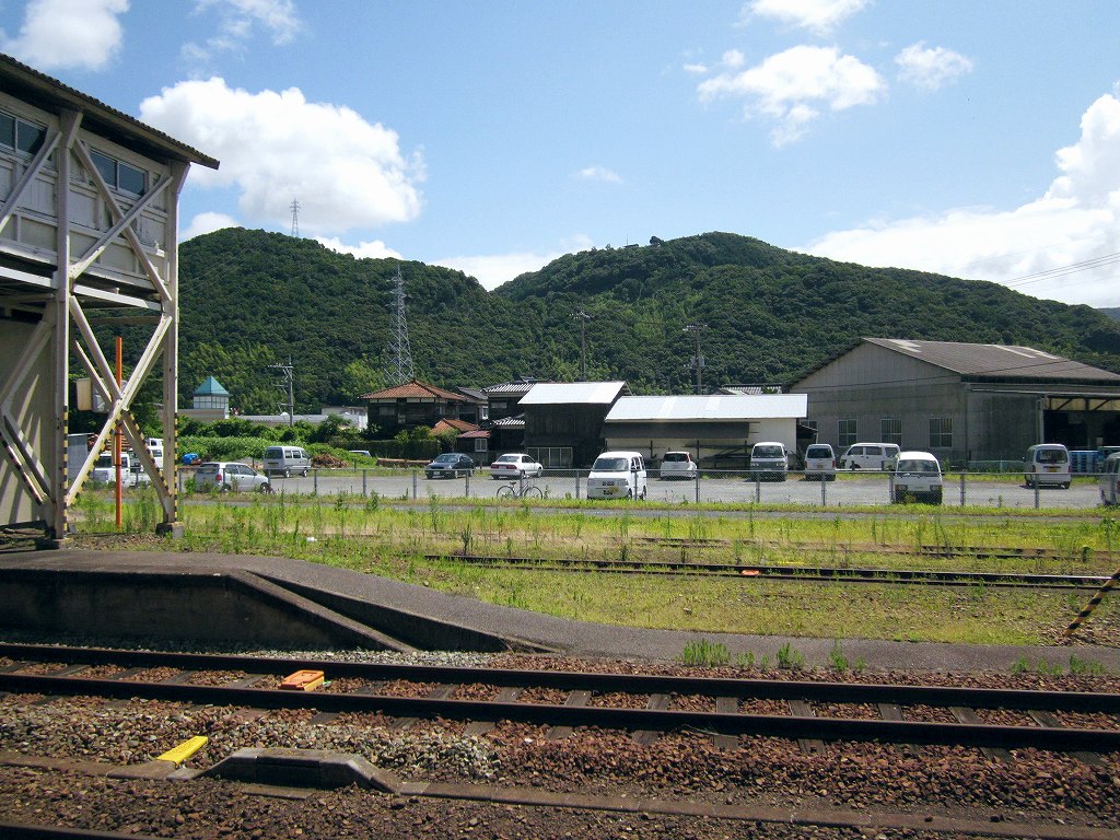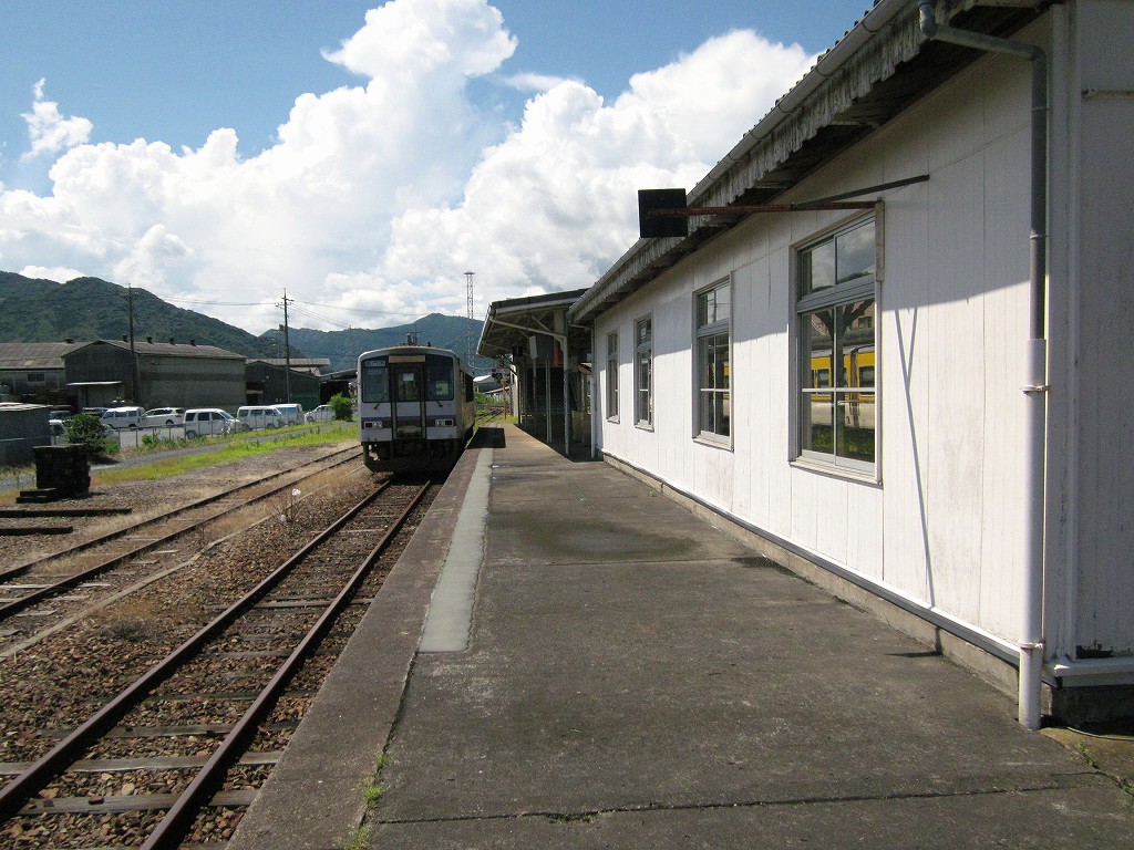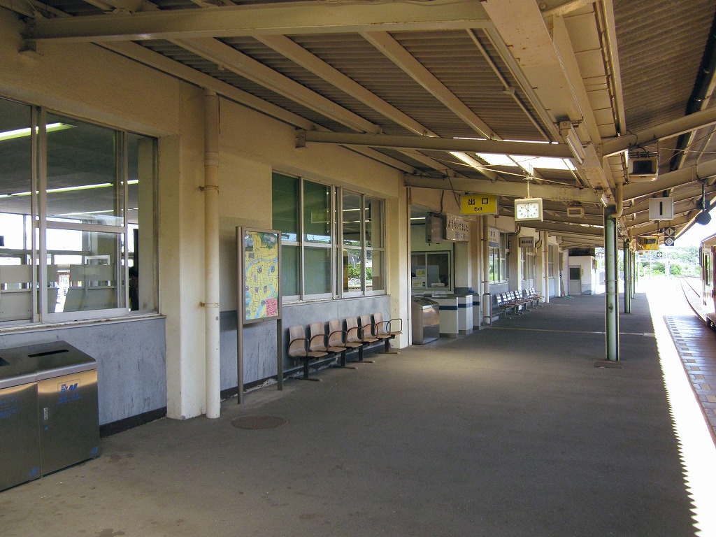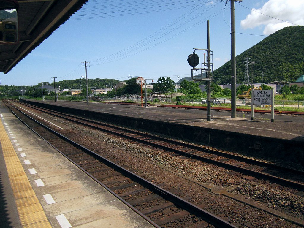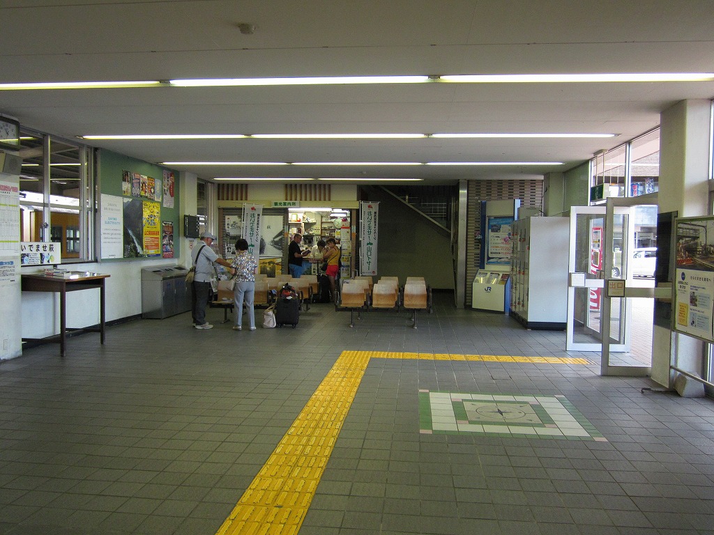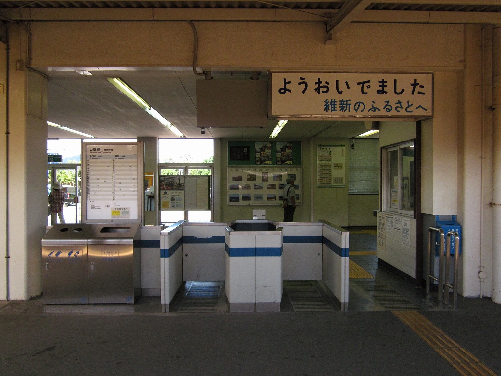 東萩は雑草で構内が荒れていて、またとんでもなく古い木製の乗換案内などがぽつんと残っているようなところだった。はっきりていって、海の感じはまったくなく、そこは山の山口の駅である。そもそも萩という地名も、ただただ暑苦しいものだった。