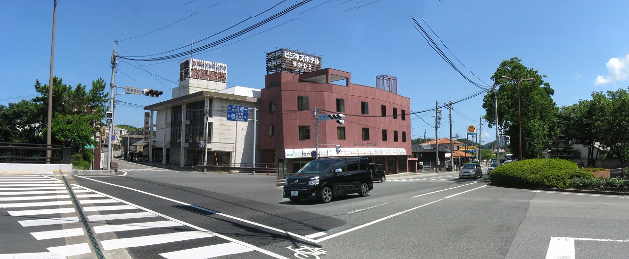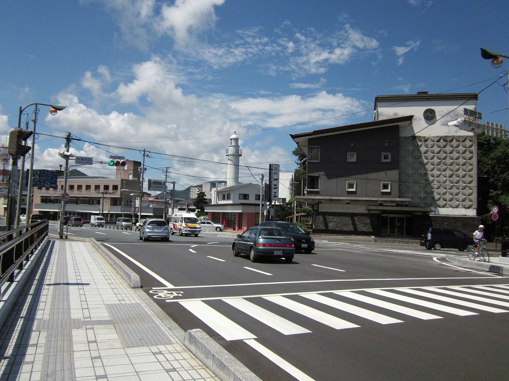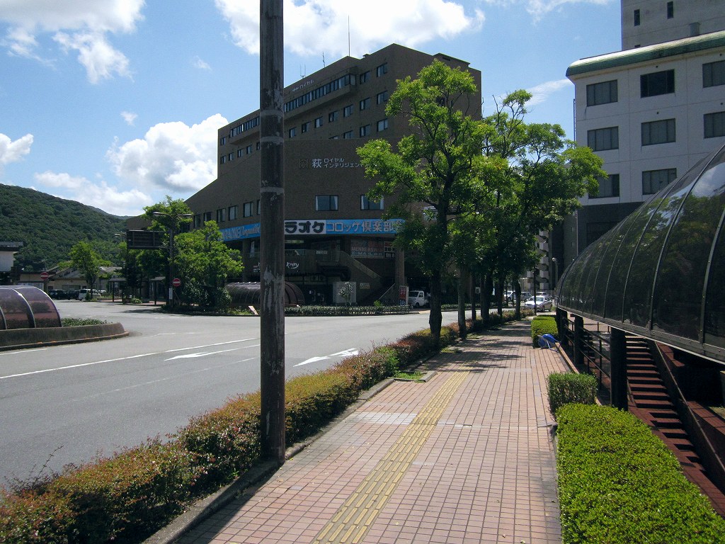 いかにも地方都市然とした中小のビル。翔一はうれしがって、古くさい、萩は廃れたところである、と気取って頭の中に文をいっぱいに書き散らした。