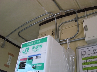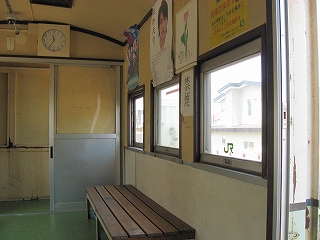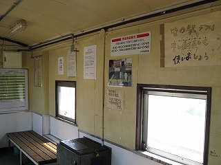 どうも貨車駅にも地位の差があるようだ。外観こそ剥離だらけだが、中は券売機や洗面所、ストーブまである。そして午前7時から午後8時の間しか開けないという。ストーブあるのでそうかなとは思ったが、こうして初夏になって時限があるとなるとたいそうだった、こんななりの無人駅で、辺りは住宅地なだけに。それで住民の人ら一年を通じてが心地よく使えるようにとの積極的な配慮をしている誰かの存在を感じた。