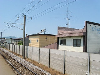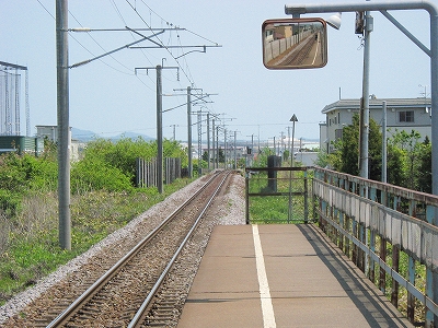 踏切から見た駅裏。