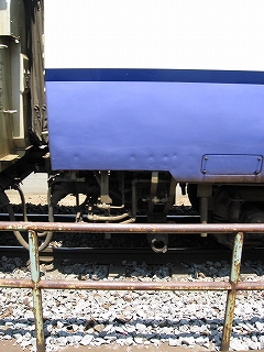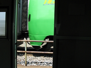 室内で待っていると汽車が車輪が間近だ。