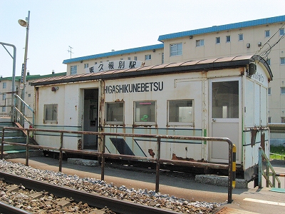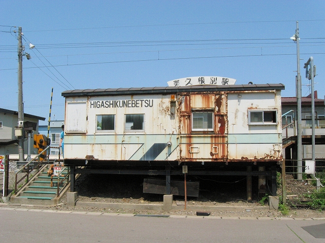 しかし列車は、駅らしい駅に行き着くまでの、途中のようなところに停車する。「ひがしくねべつです」と軽い感じの女性の自動放送を思い返していると、転轍機も踏まずすっと静かに停まった。南下が不安になって途中で列車を降りたかのような気にさせてくれ、この駅には救われた気がし、元気を取り戻して下車。二三の人と降りた。降りた人はその足で歩きつづけ、住宅街路の角に消えた。ここは飛び地みたいに道東の雰囲気が忽然と現れている。