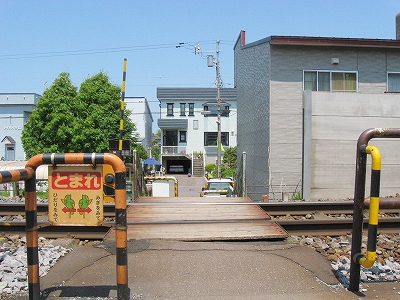 踏切を渡り終えて。