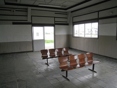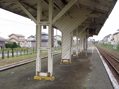 ほんとに小さなのりばしかないが、駅舎が壊すのもたいへんそうな本物の方石積みで、きれいな古典的建築だった。付近は商業施設と底抜けに広い駐車場なので、貨物の扱いで鳴らしたところなのだろう。しかし中は薄汚れて、貨物輸送の仕事の過酷さと、忘れられた栄華を映し出している。