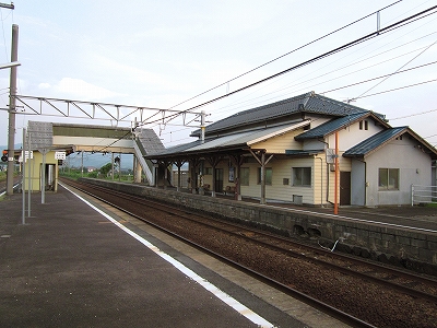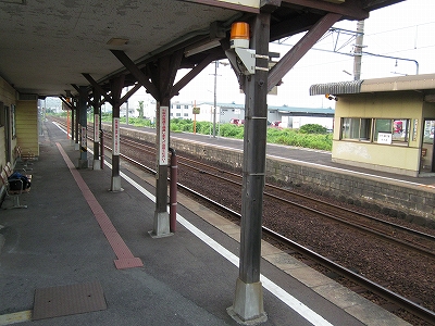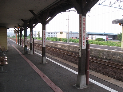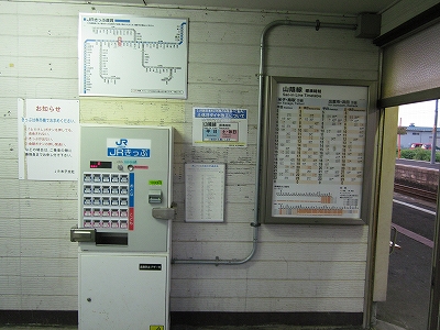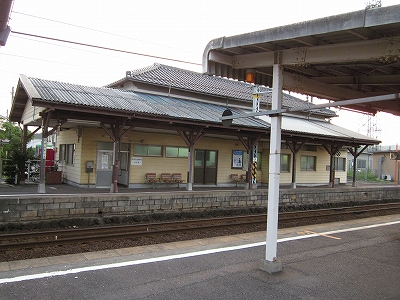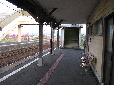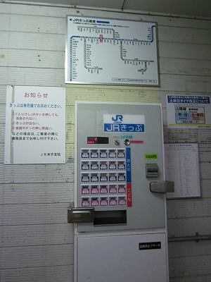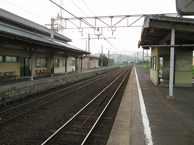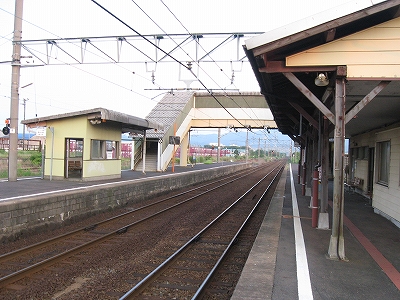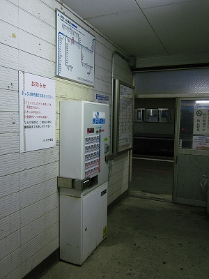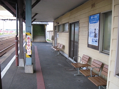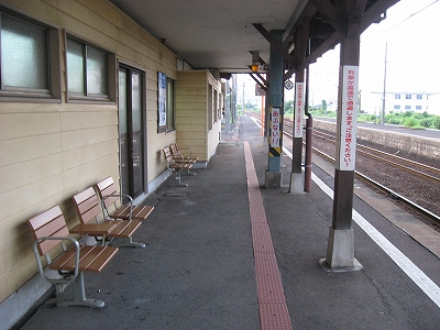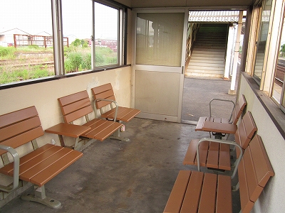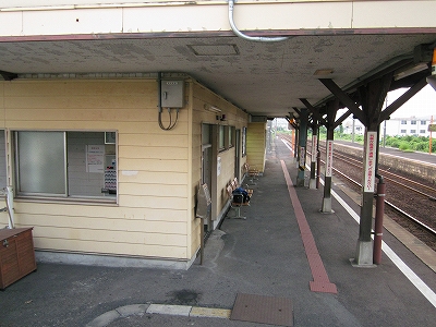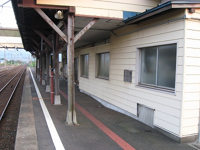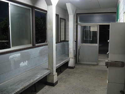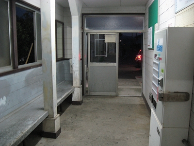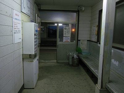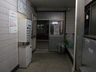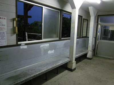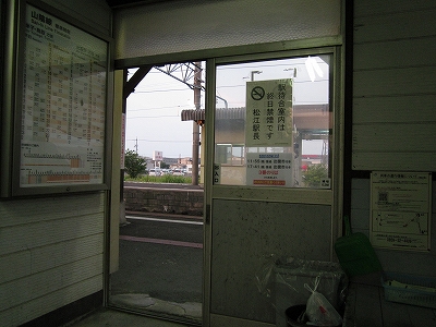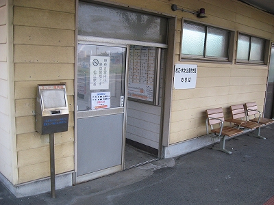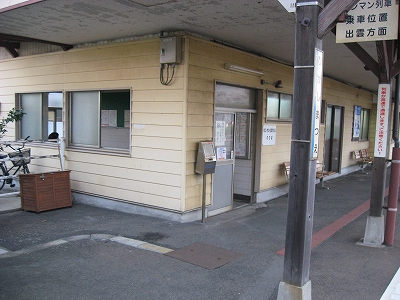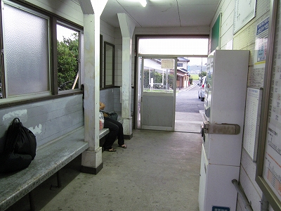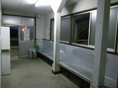 駅舎に入ると建物に比して待合が雀の額ほどという、いかにもな貨物駅でリアルだ。鼠色の居室もなにか旅客不遇の親方日の丸時代を思わないでもない。もっともそんな意識を今持っている人はほぼいないだろうけど。 前面に新しい基礎でかなり増築してあった。駅なんだから入れて休ませてよ、なんて思うけど、まあ、昔なら入って談笑もできたろうか。山陰でも深い地方なので、貨物もそこそこ取り扱いがあるのが想われた。
