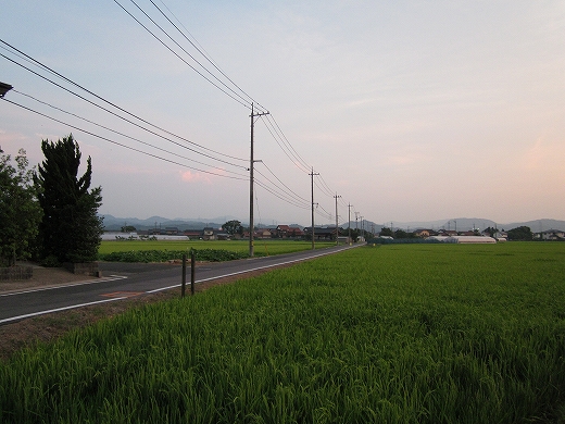 ひとりぽつぽつ歩くと、さびしい集落道と出雲地方の田んぼがいやになつかしげだった。このあたりは水耕地なっているが、やはり水が回って来るのだろう。集落は山辺に寄ったりして、固まっている。