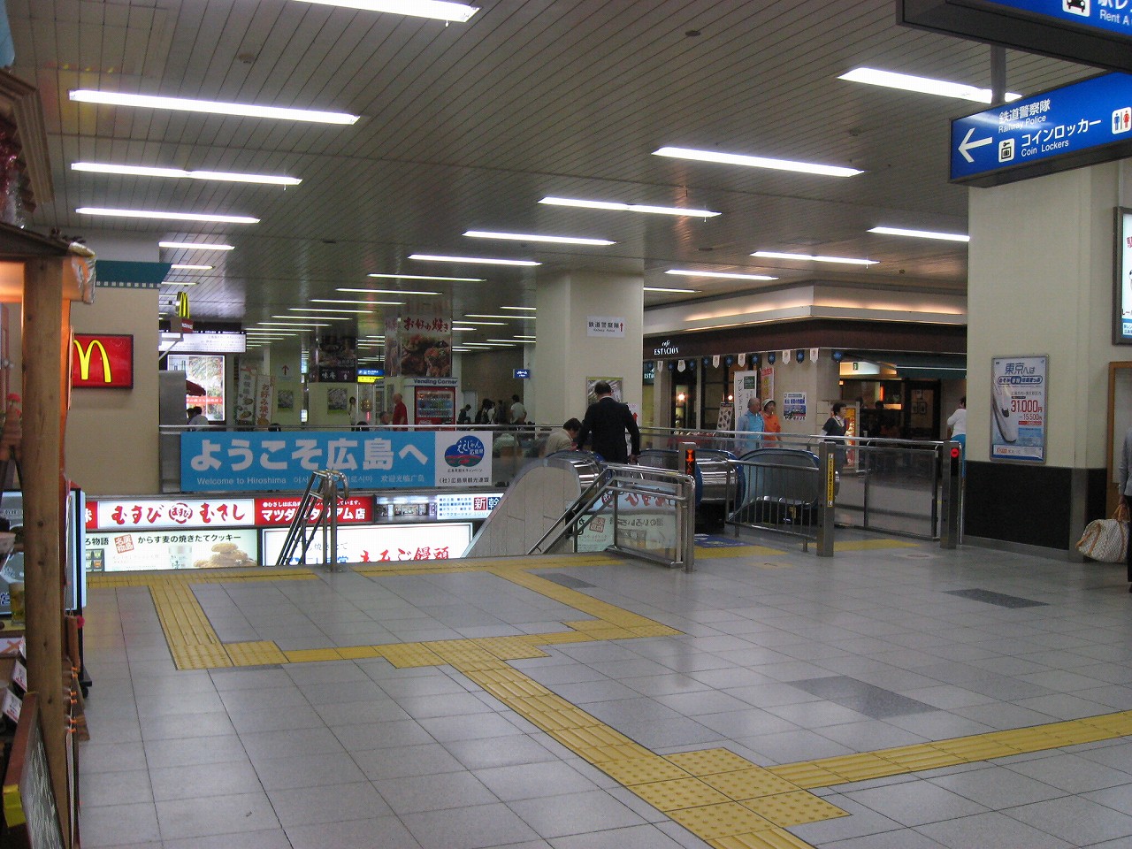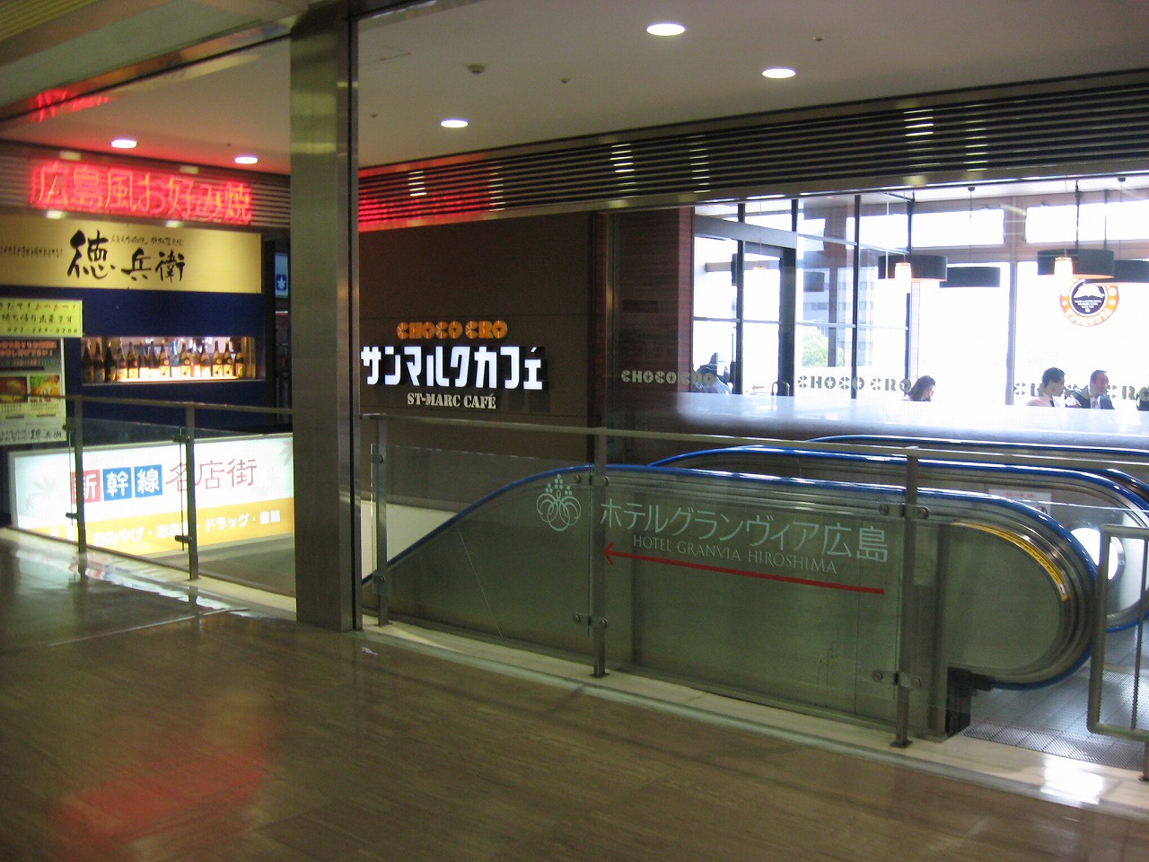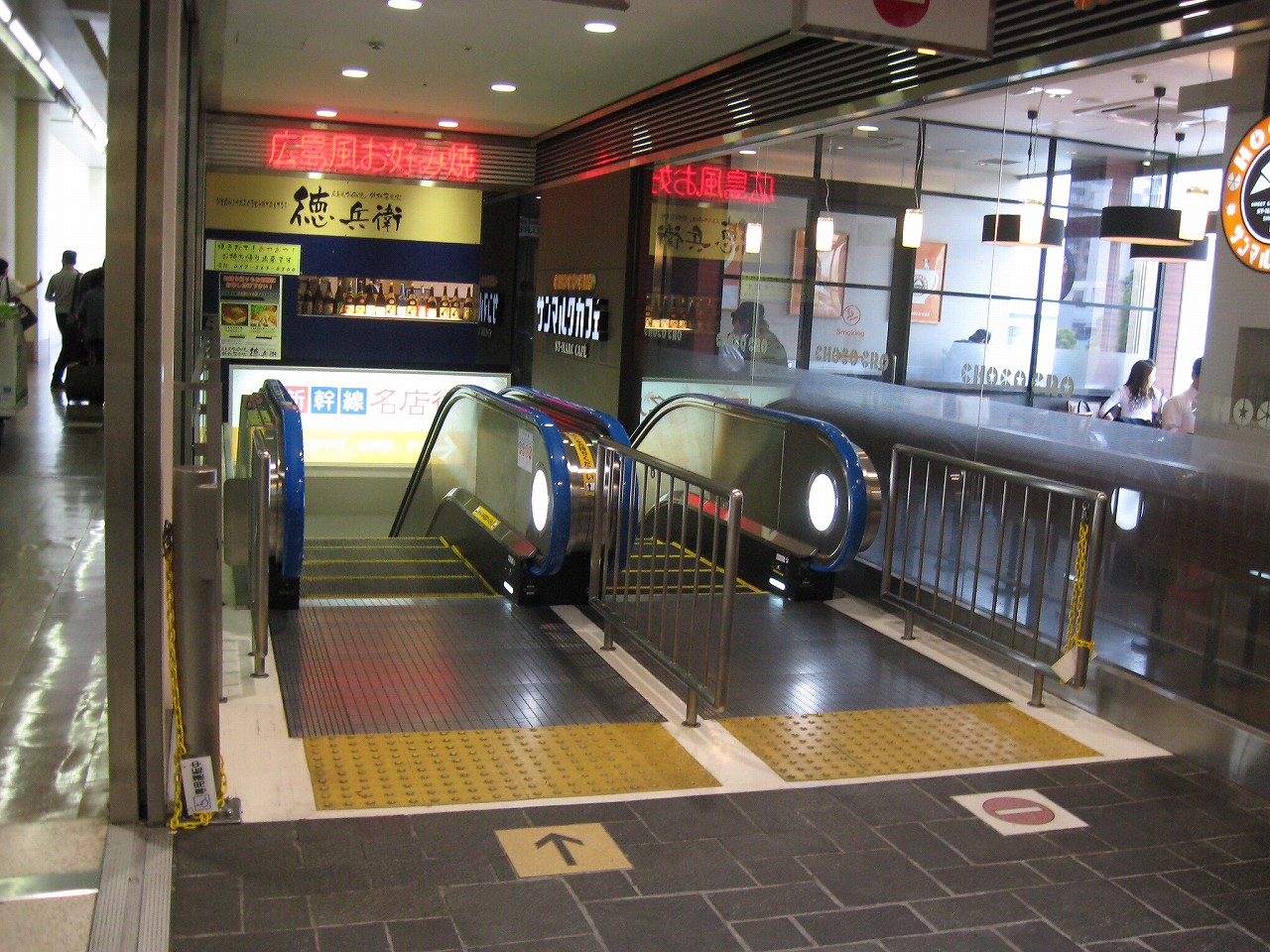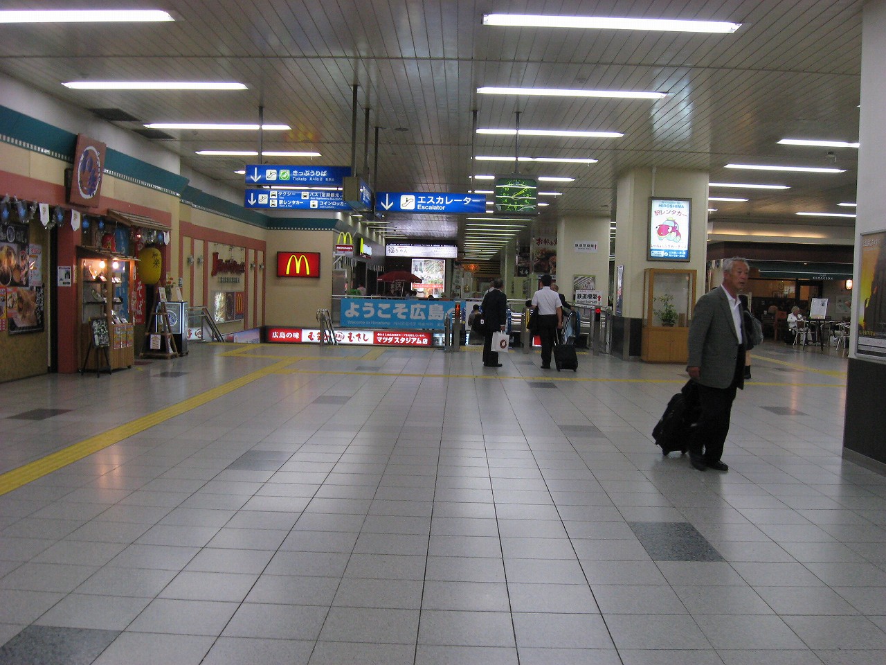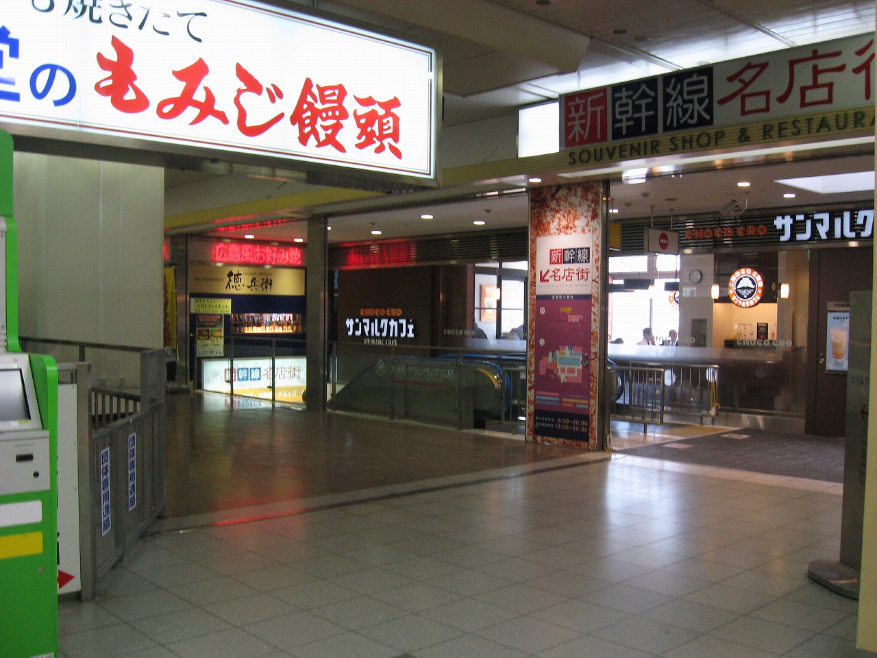 フロアの構造は複雑なのだが、その要因となっているのはまさに、幹在それぞれの改札内という区切りを、普通のビルのフロアに敷いているからだろう。そこに隙あらばという感じで大小店舗が入り込み、おまけけ改札内外にまたがる店もあって、鉄道という無窮の移動手段とレストラン土産街の融合した、ちょっと夢のような空間になっているのだが、これは1970年以降、どんな旗艦駅も志向したことだ。けれどそういう古さをまったく感じさせず、いまも生き生きしているのがこの広島駅新幹線駅2階だった。