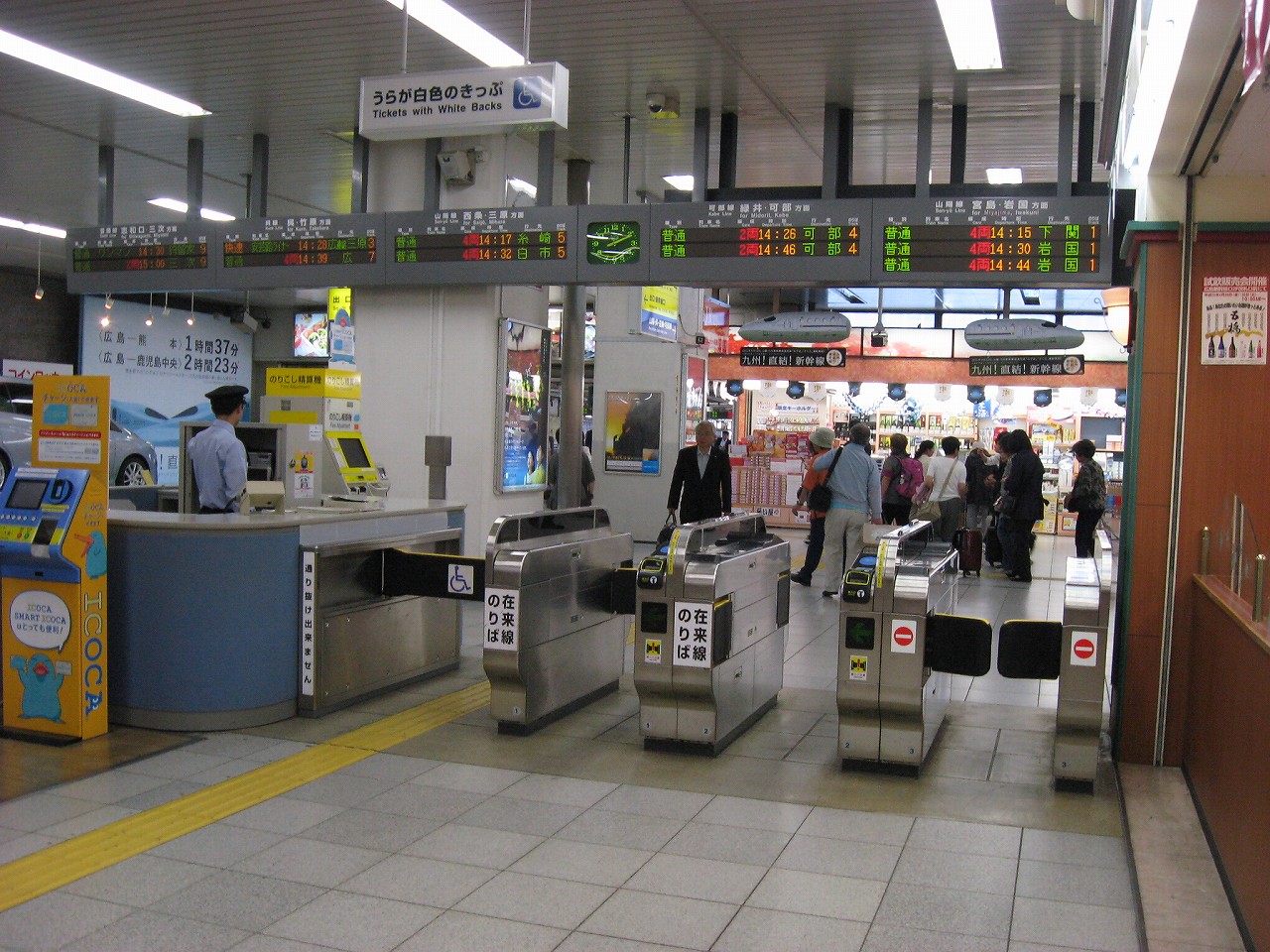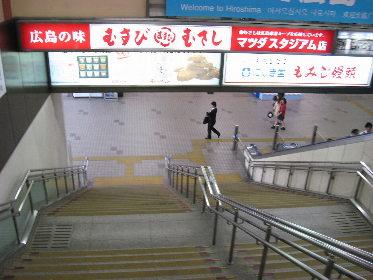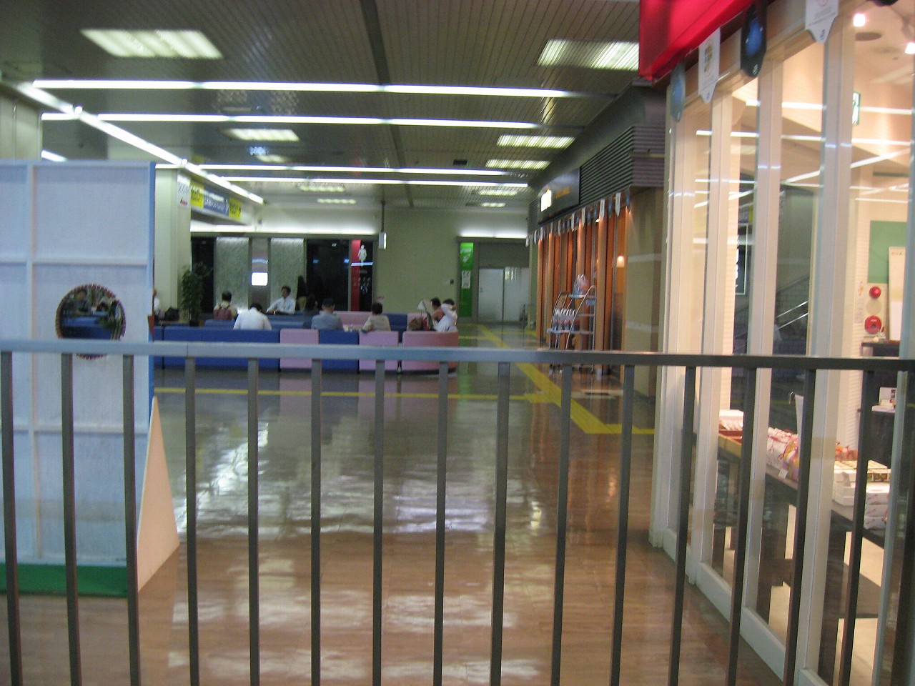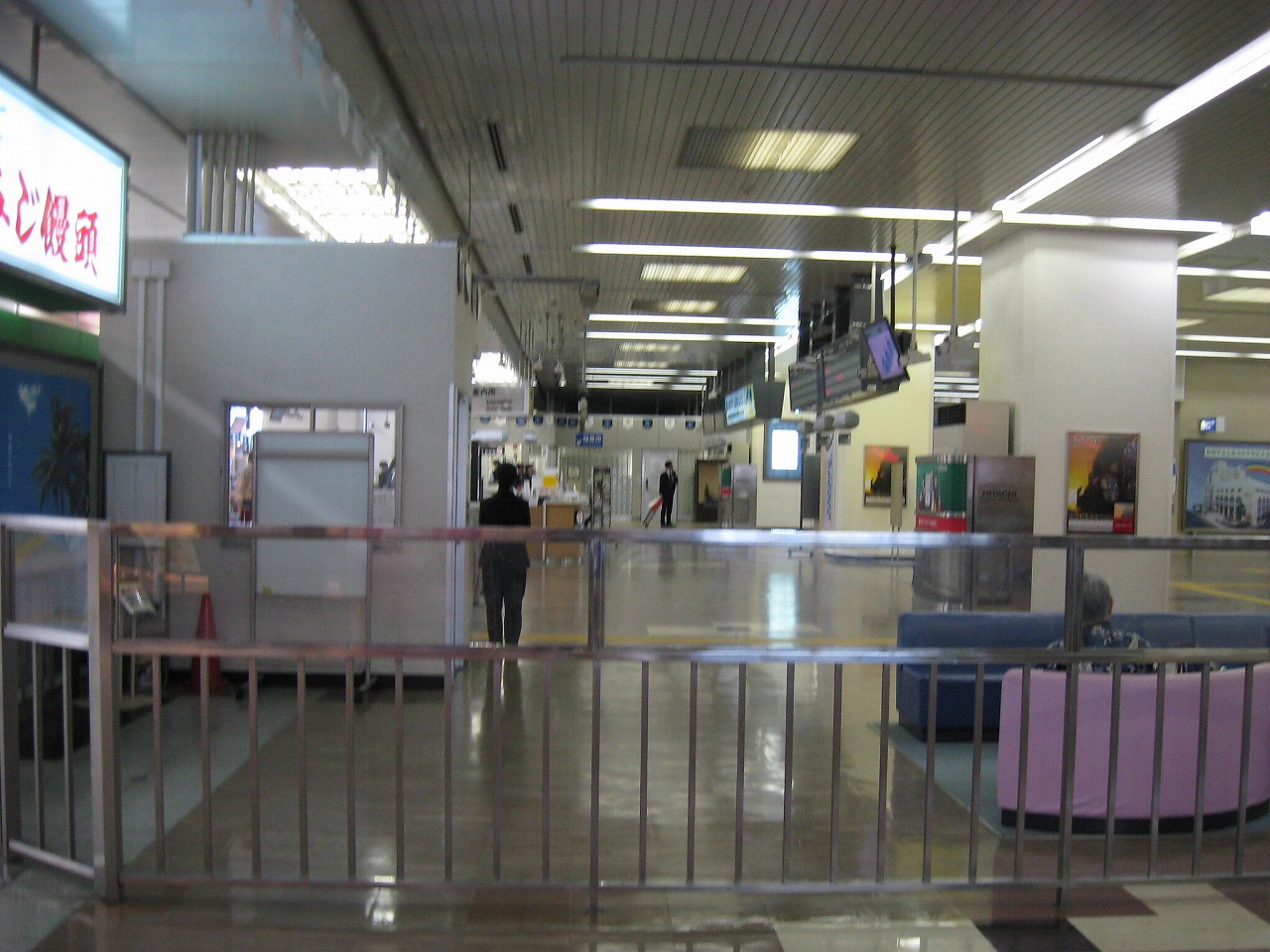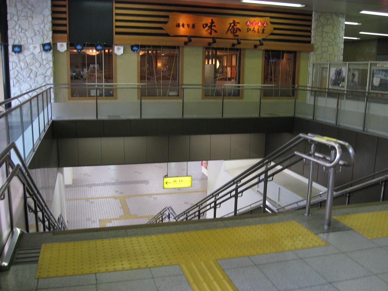 改札前コンコースに戻ってくると、やはりこっちが駅前側かなと思ってしまう…これだけ充実した裏口駅舎というのもなかなか見かけない。パリ風のテラス席のある喫茶店やマクド、お好みの店に鉄モの店となかなかに濃いコンコースだった。改札内にはマツダの車も上げてあったしなぁ…