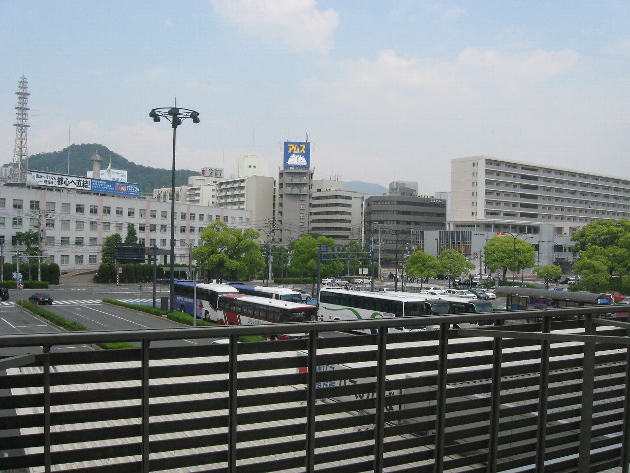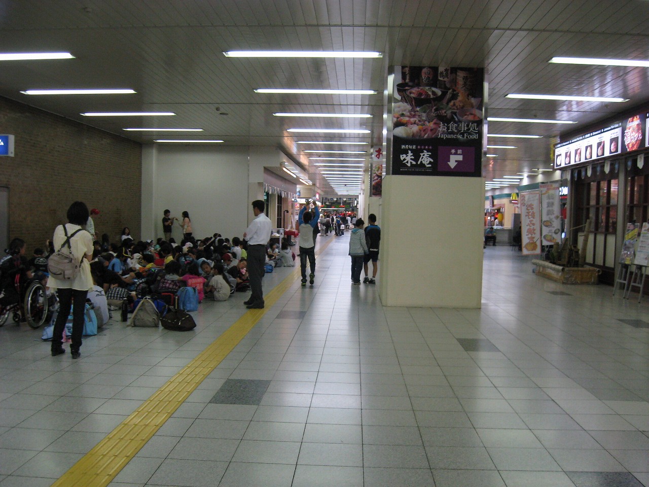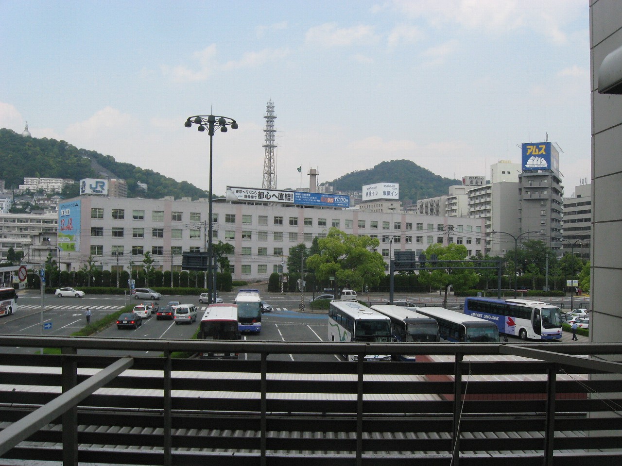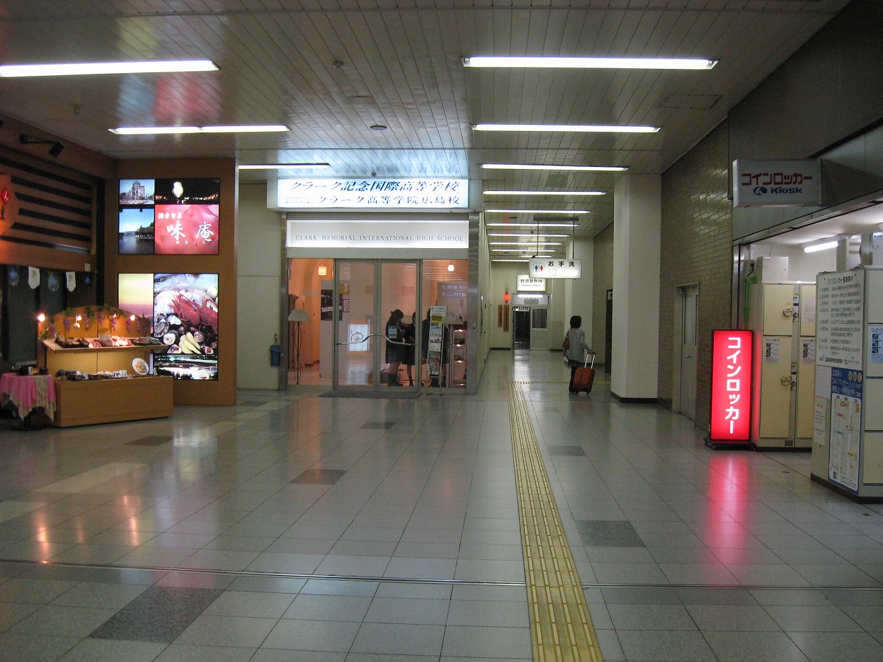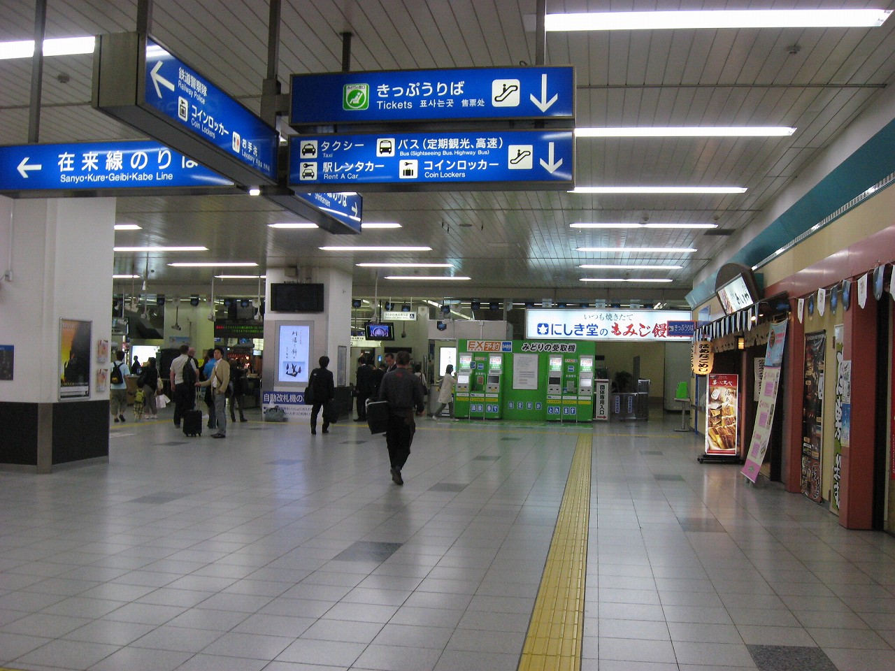 改札前コンコースに戻ってくると、やはりこっちが駅前側かなと思ってしまう…これだけ充実した裏口駅舎というのもなかなか見かけない。パリ風のテラス席のある喫茶店やマクド、お好みの店に鉄モの店となかなかに濃いコンコースだった。改札内にはマツダの車も上げてあったしなぁ…