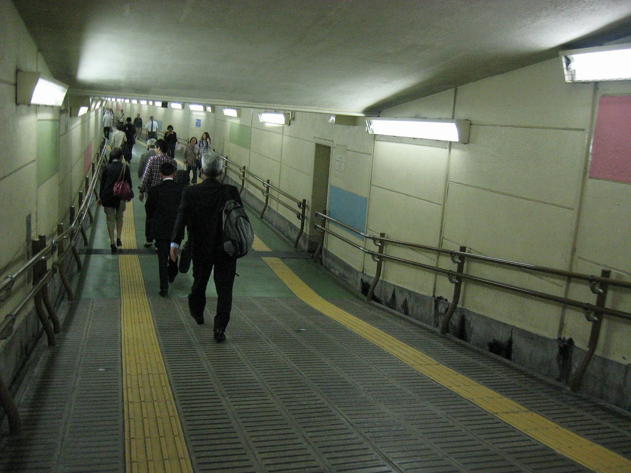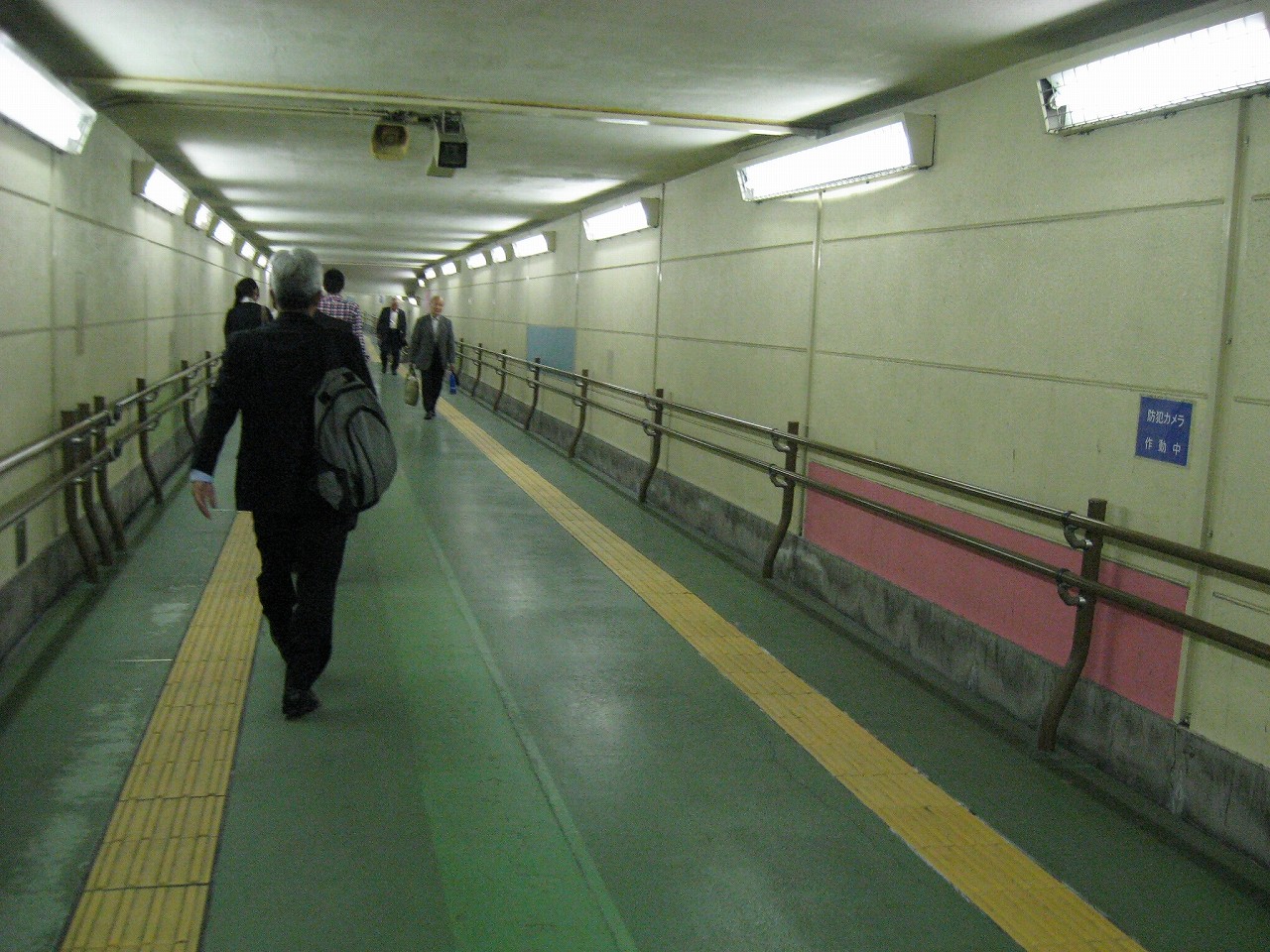 早くしないと昼を過ぎてしまうだろう。裏表をつなぐ唯一の古びた地下通路を経て、市電のある駅前に戻ろう。ところでこの地下通路が、駅改築が決まった要因の一つでもあった。つまり、表裏の行き来がしにくい、ということだ。けれども人というのはやれるようにやるというものだ。緑の床面の細い通路を、人火度が往来しているのは、逞しくも不思議な感じだった。