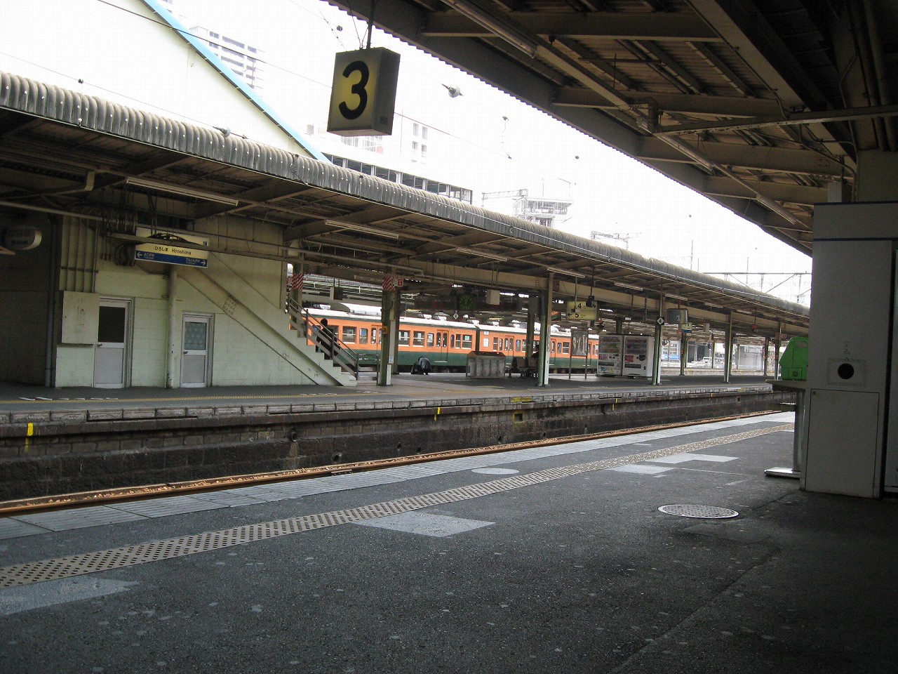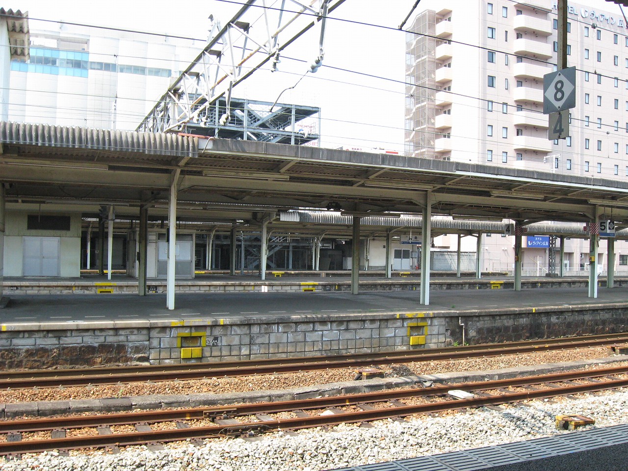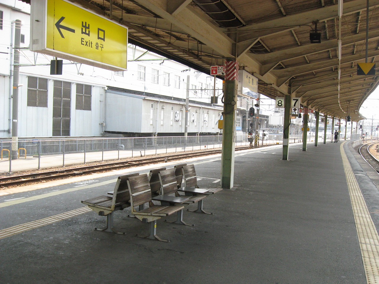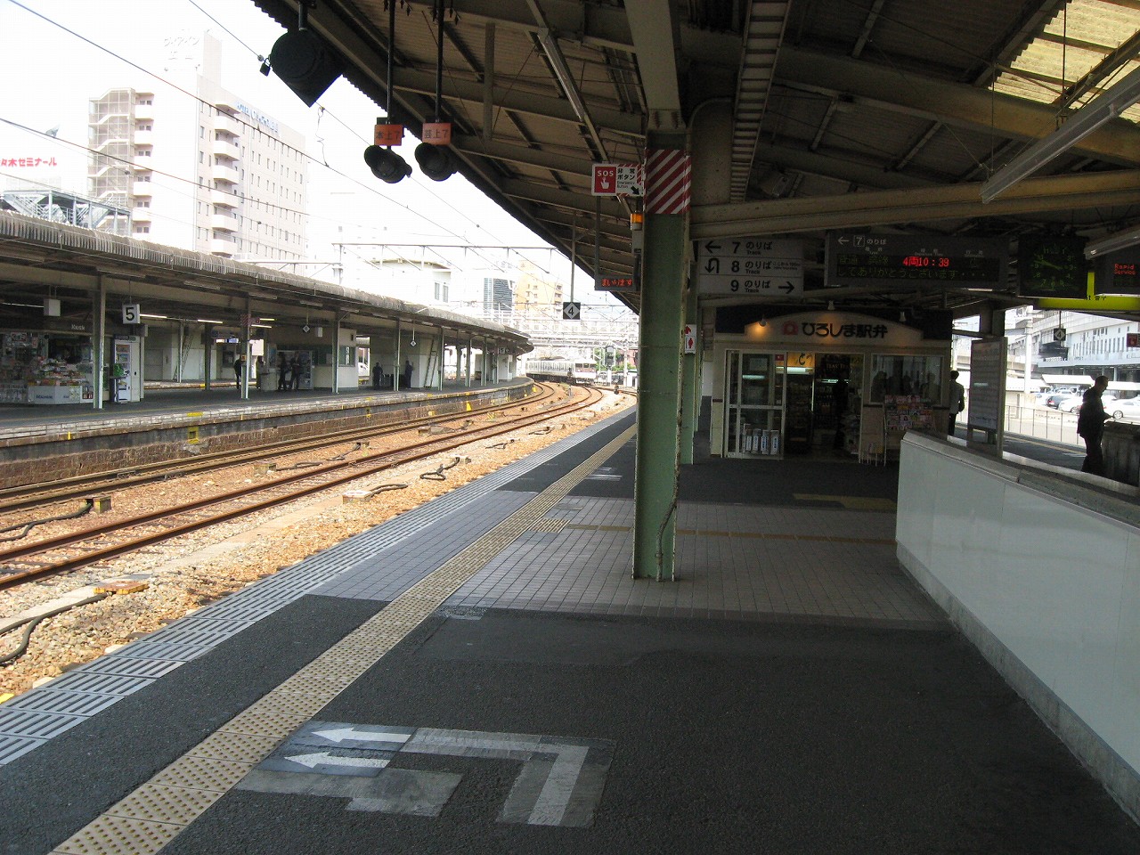 7・8・9番線下り口付近、芸備線、呉線ホームですね