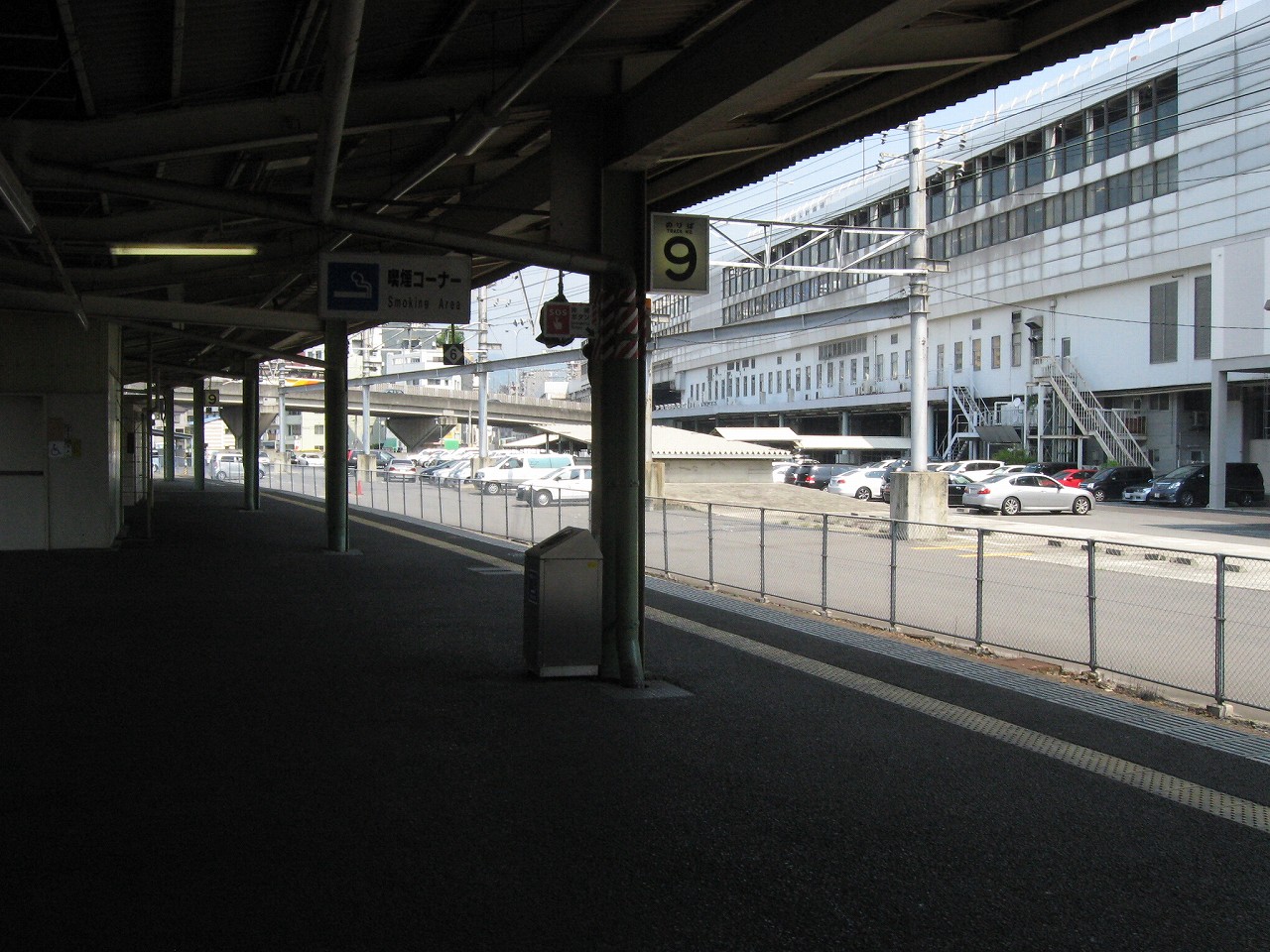 新幹線と在来線の間。さっき7・8・9番線ホームから見た駐車場です。なんかこういうのおもしろい。