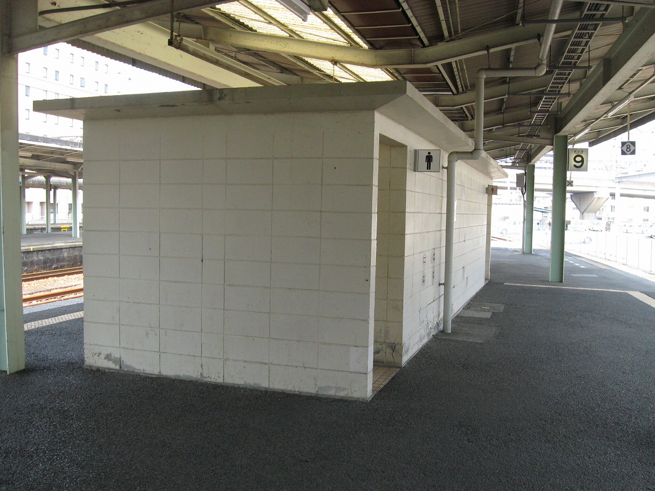 大駅のホームの端にはこんな感じで武骨なトイレがあります