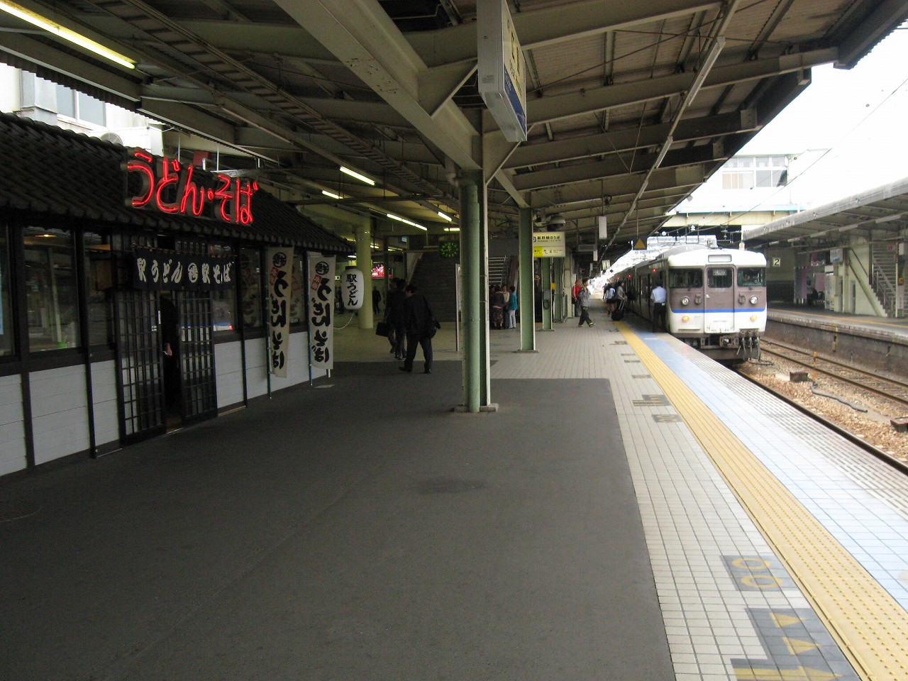 各ホームにうどん・そばの店があるのがわかります