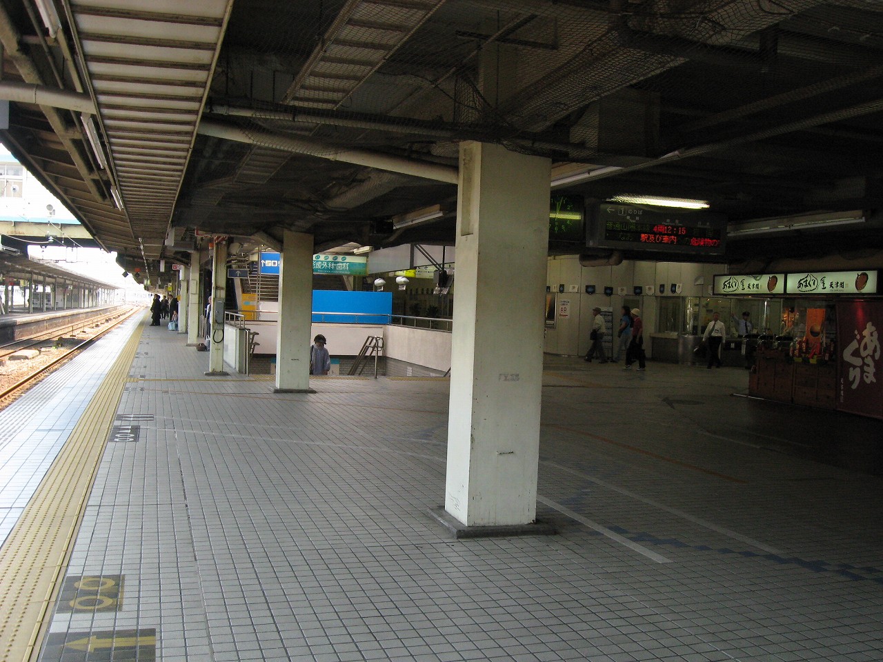 よく考えたら、駅ビル側って改札内コンコースがないに等しいんだなと。これはつまり表口に出るにはいったん1番線ホームに降り立たないといけないことになる。でもだいたいの人は地下道から直結の改札を使うようだ。